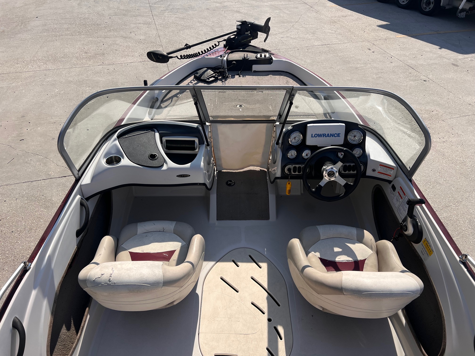 The 2012 Nitro Z7 Sport is an 18-foot, 8-inch fiberglass fishing and recreational boat with a 7-foot, 8-inch beam, a dry weight of 1,650 pounds, and a 41-gallon fuel capacity. It features an a trolling motor, a built-in cooler, and storage for fishing rods and gear. The Z7 Sport is designed for mixed activities, offering seating for five, a sun lounge, a livewell, and a stereo system, all supported by a matching trailer with a swing-away tongue
