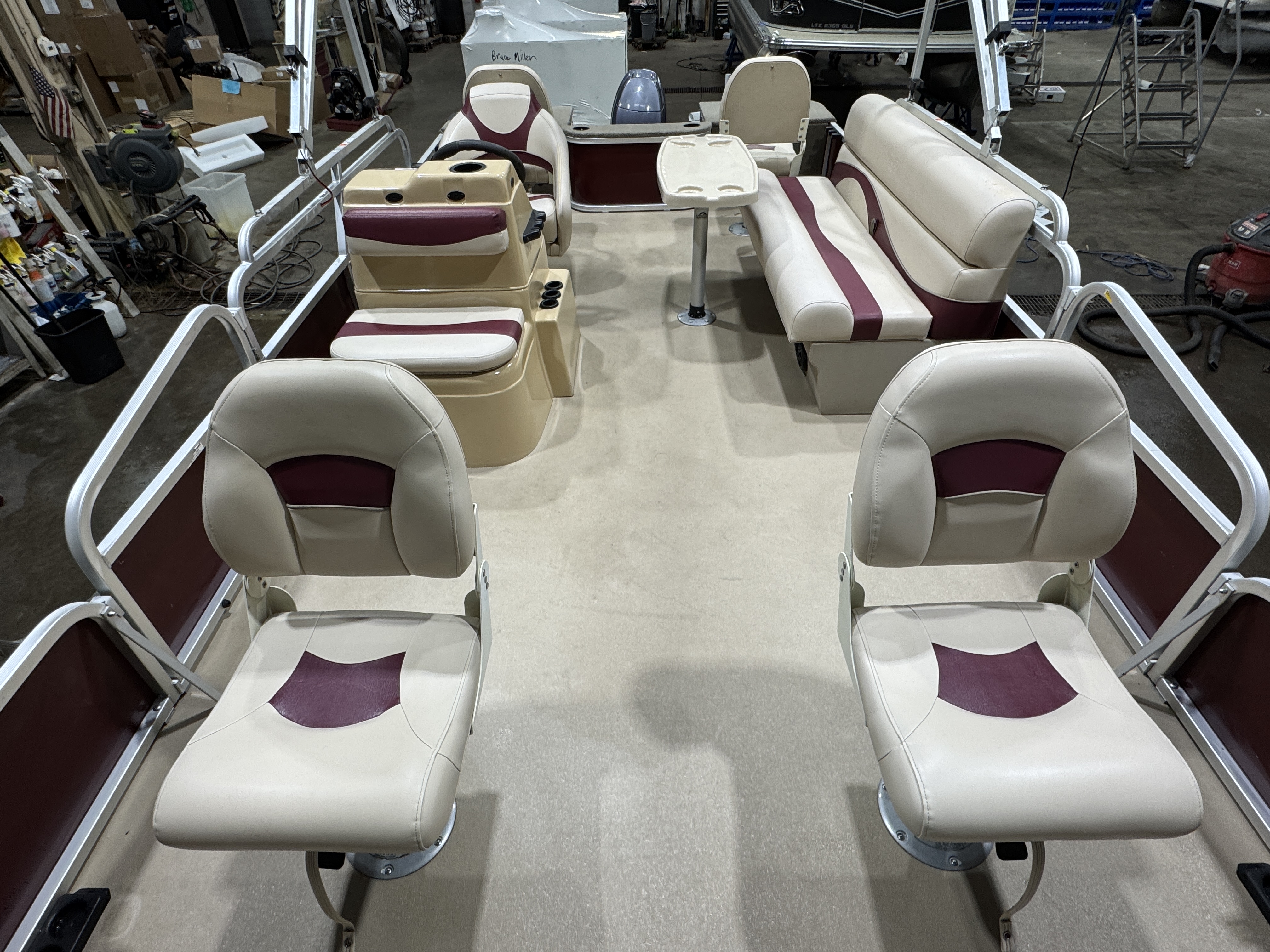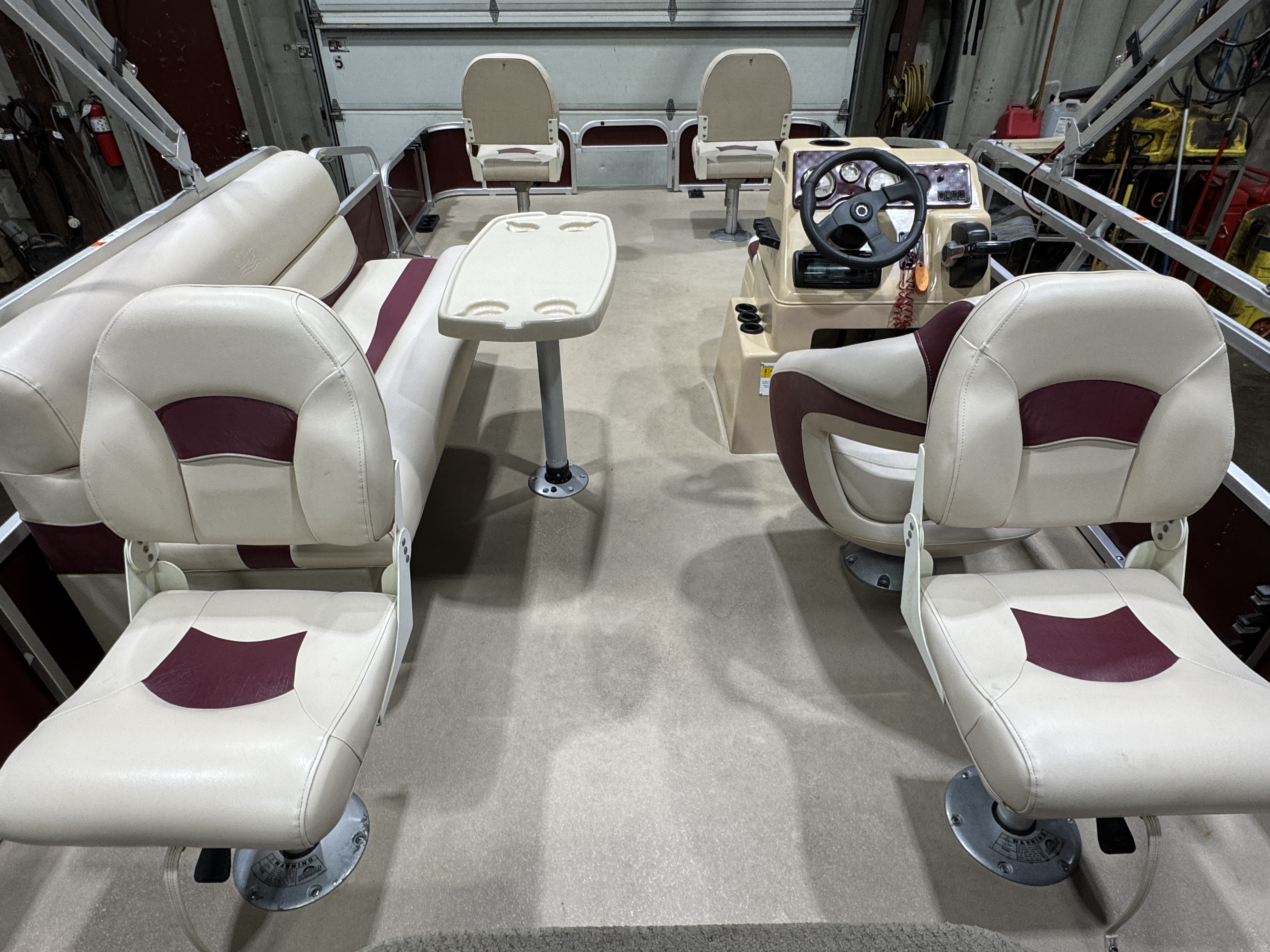 EFI Outboard. This 4 corner fishing layout pontoon features 4 fishing seats; 1