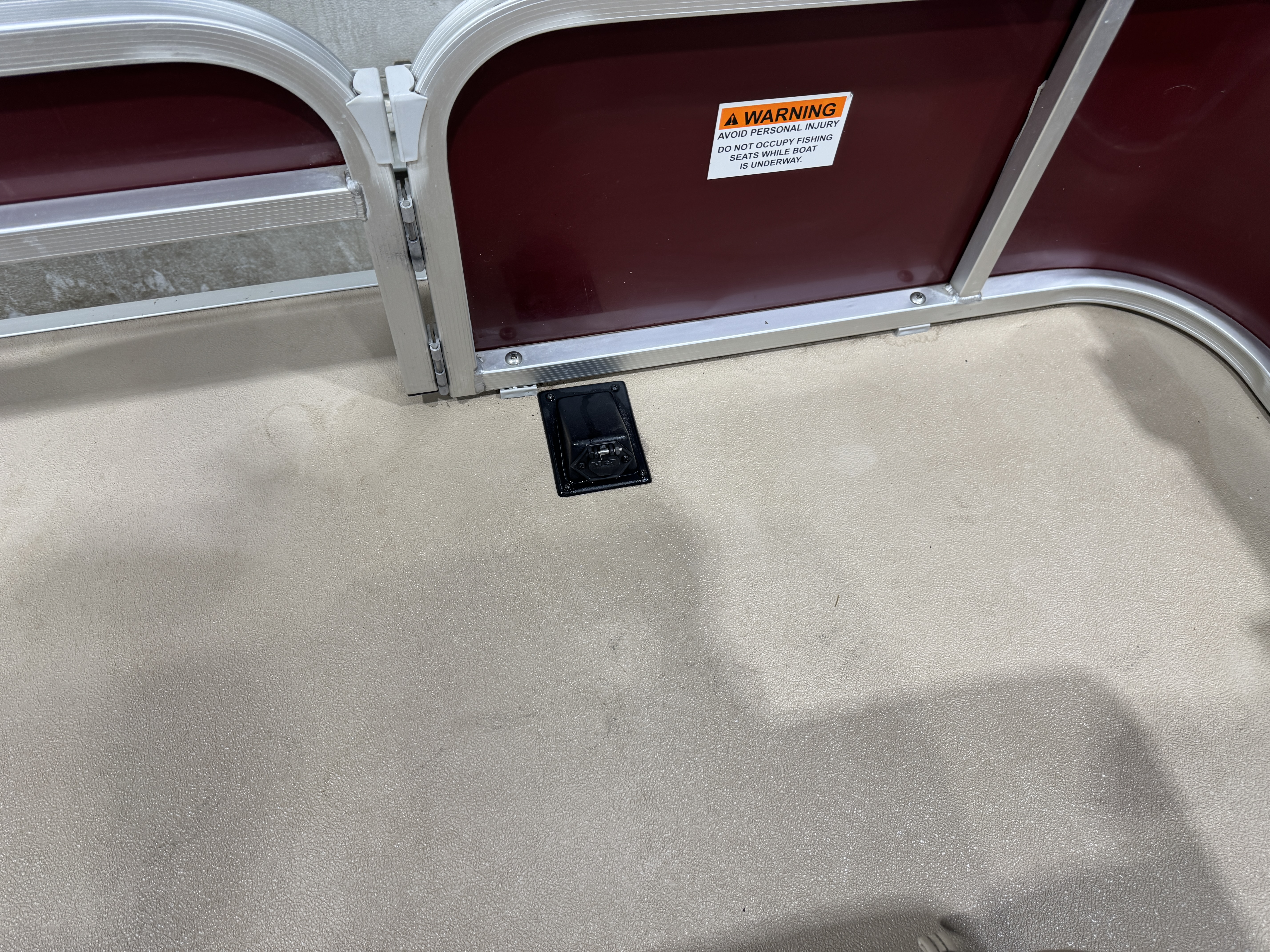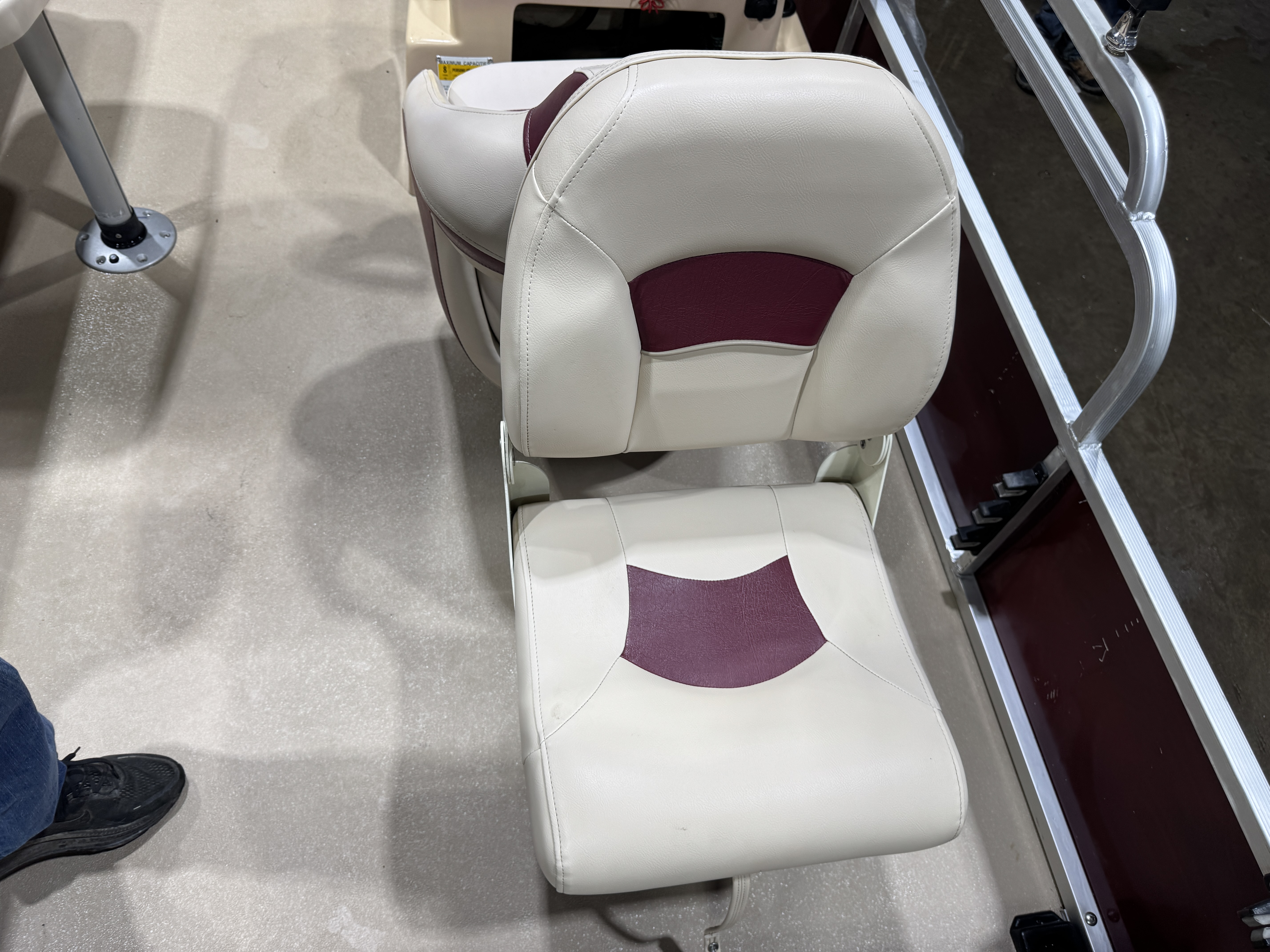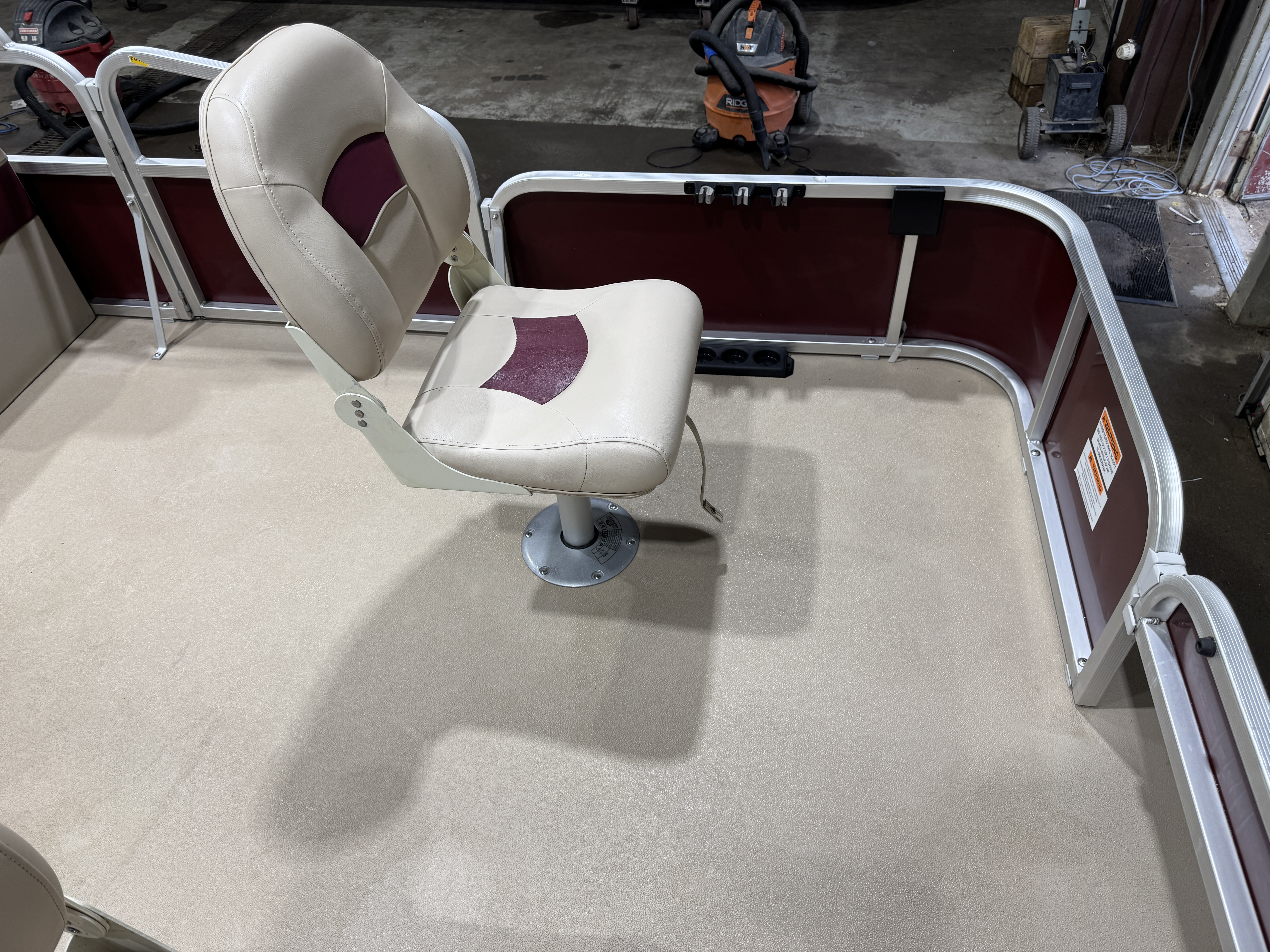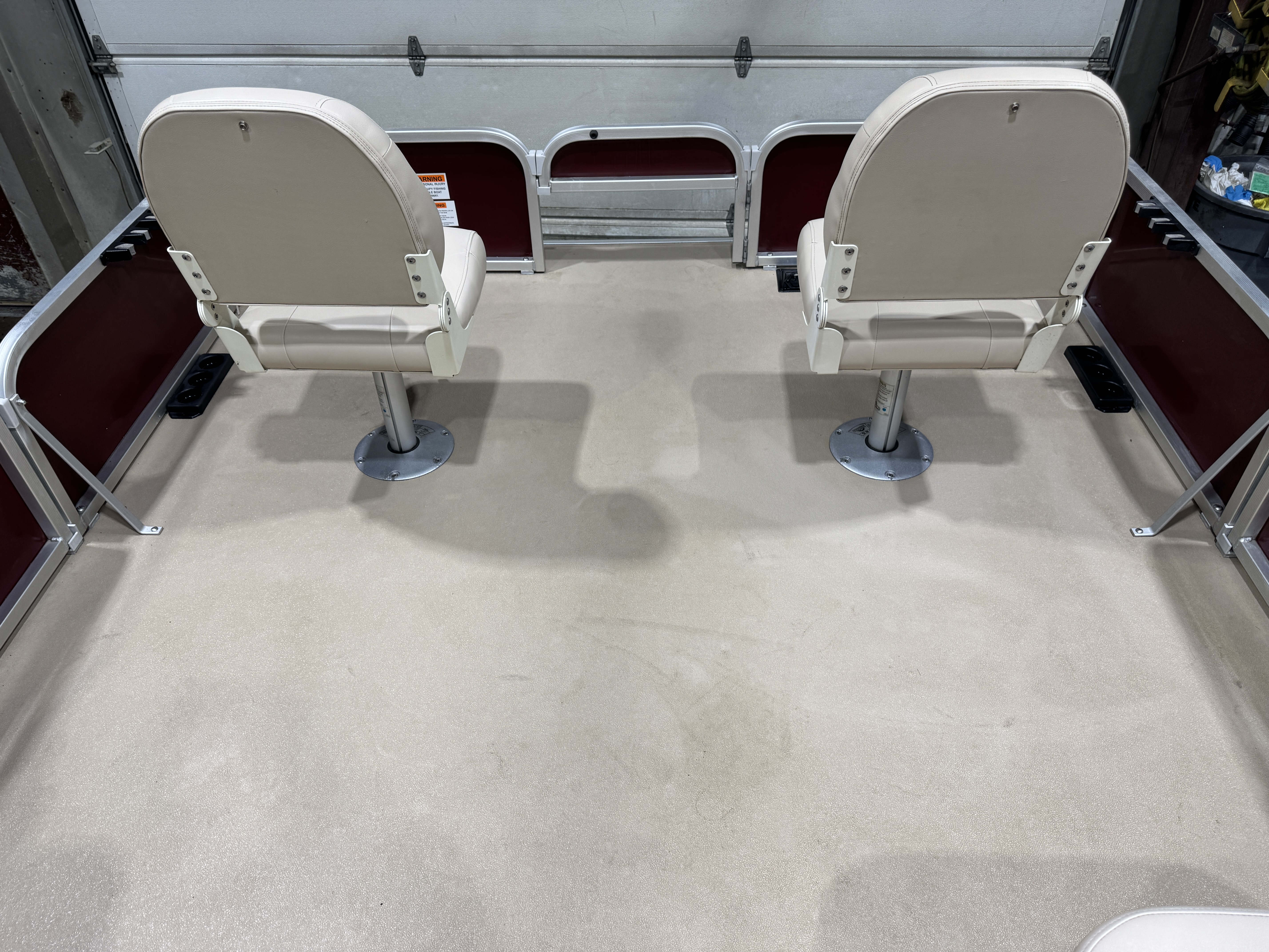 in each corner of the pontoon. The front fishing seats each have a vertical rod