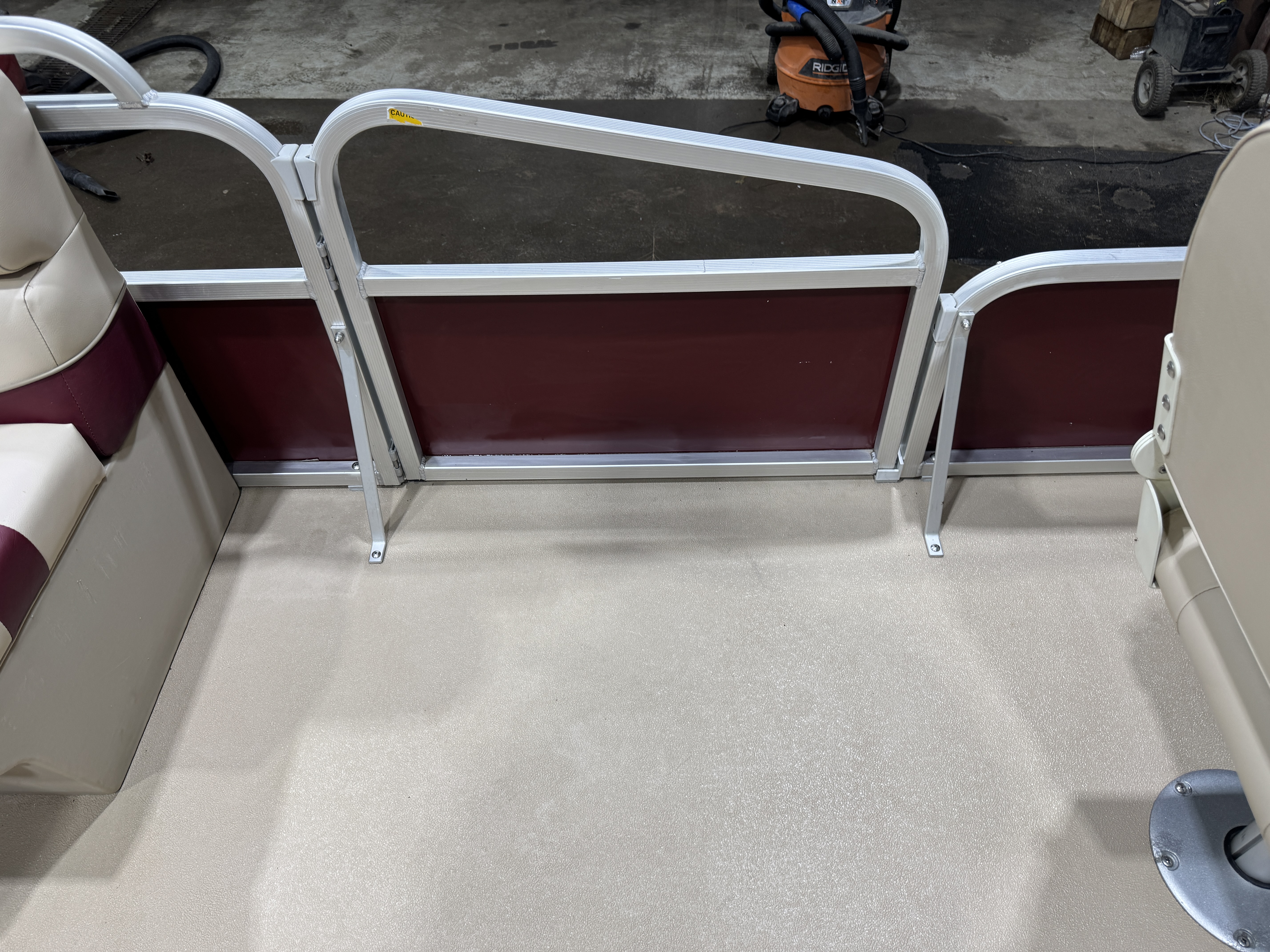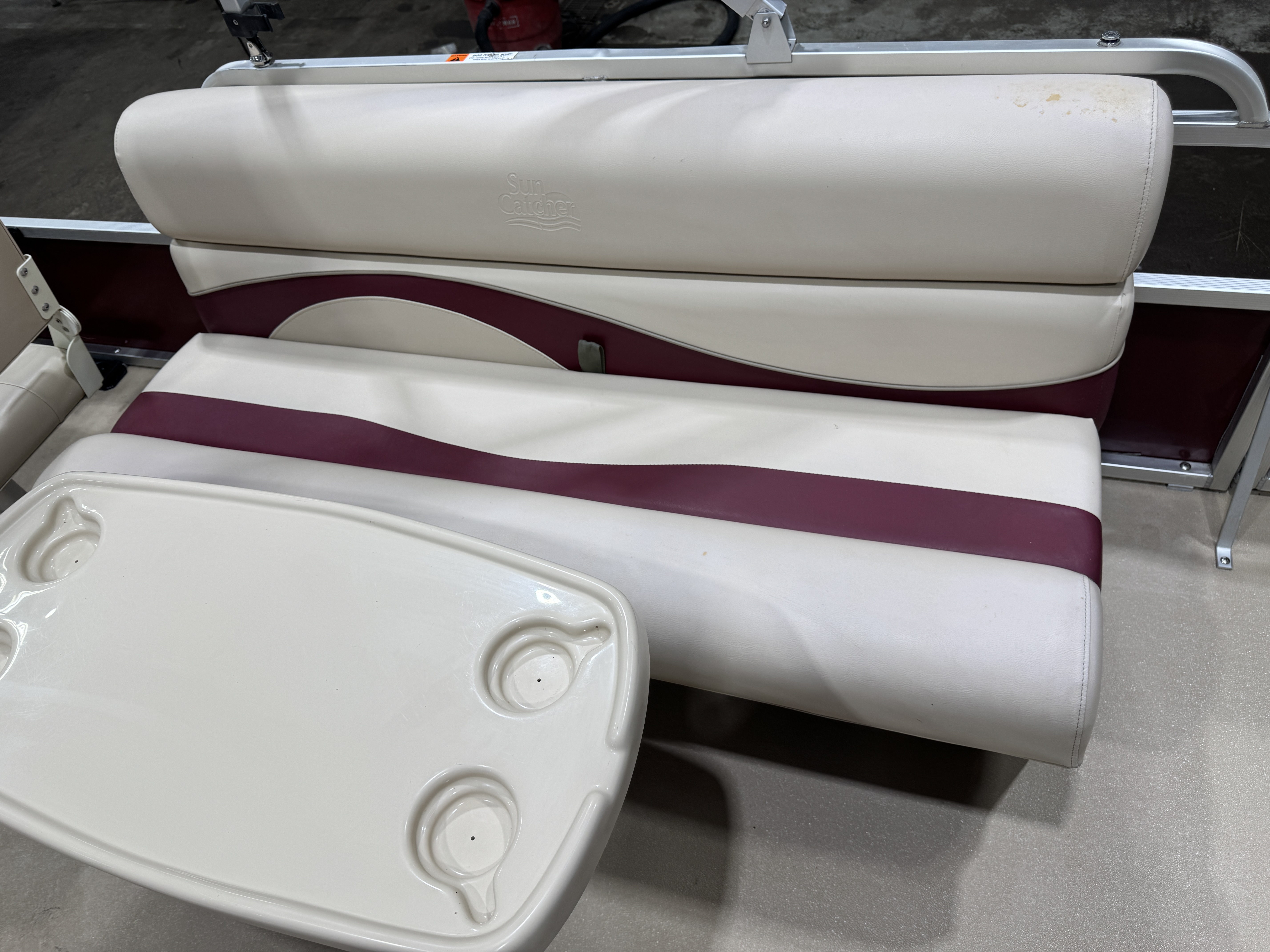 bench seat along the port side fence rail with a table. The last 2 fishing seats