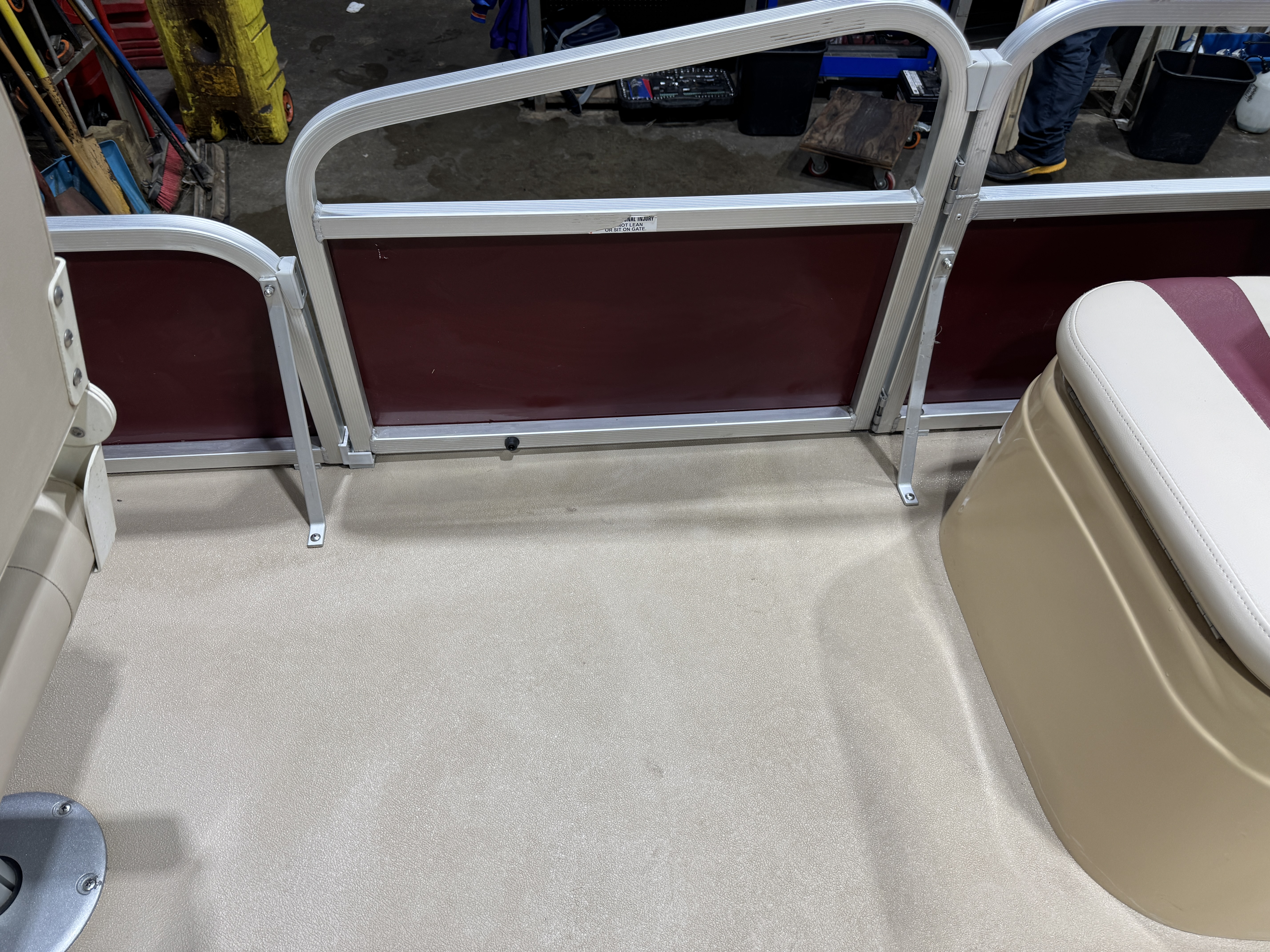 gates on board with 1 up front and 1 on each side of the pontoon behind the