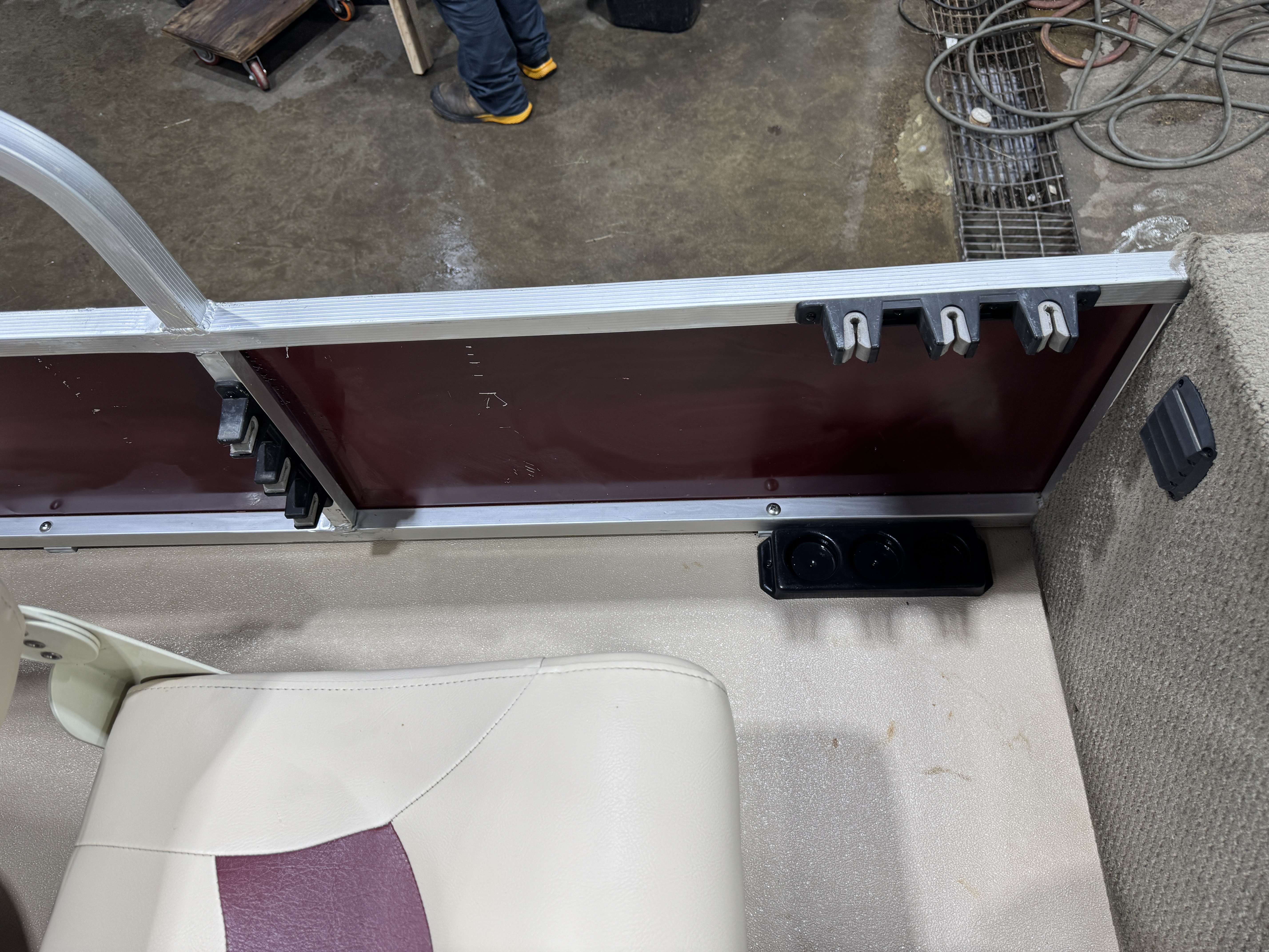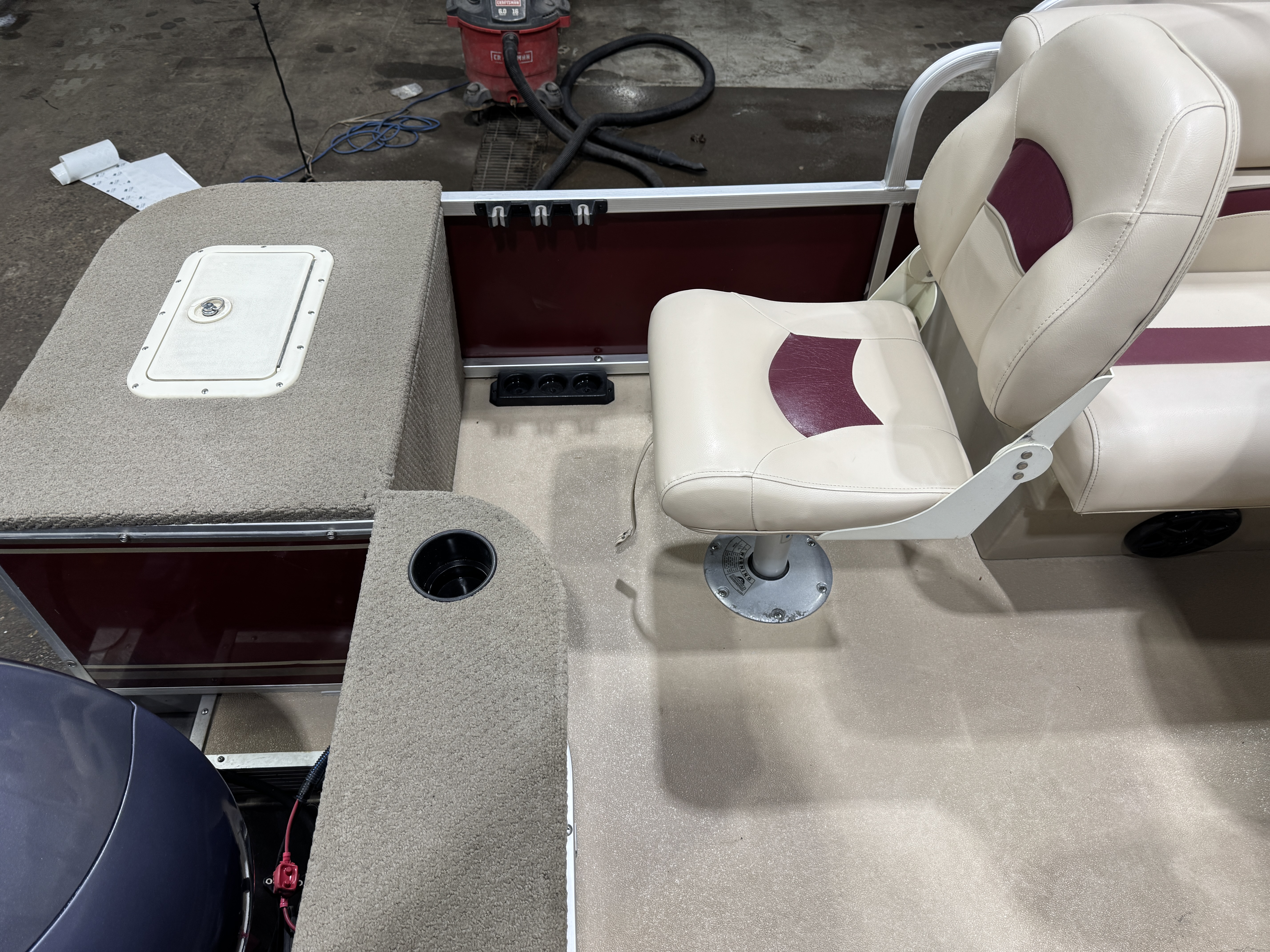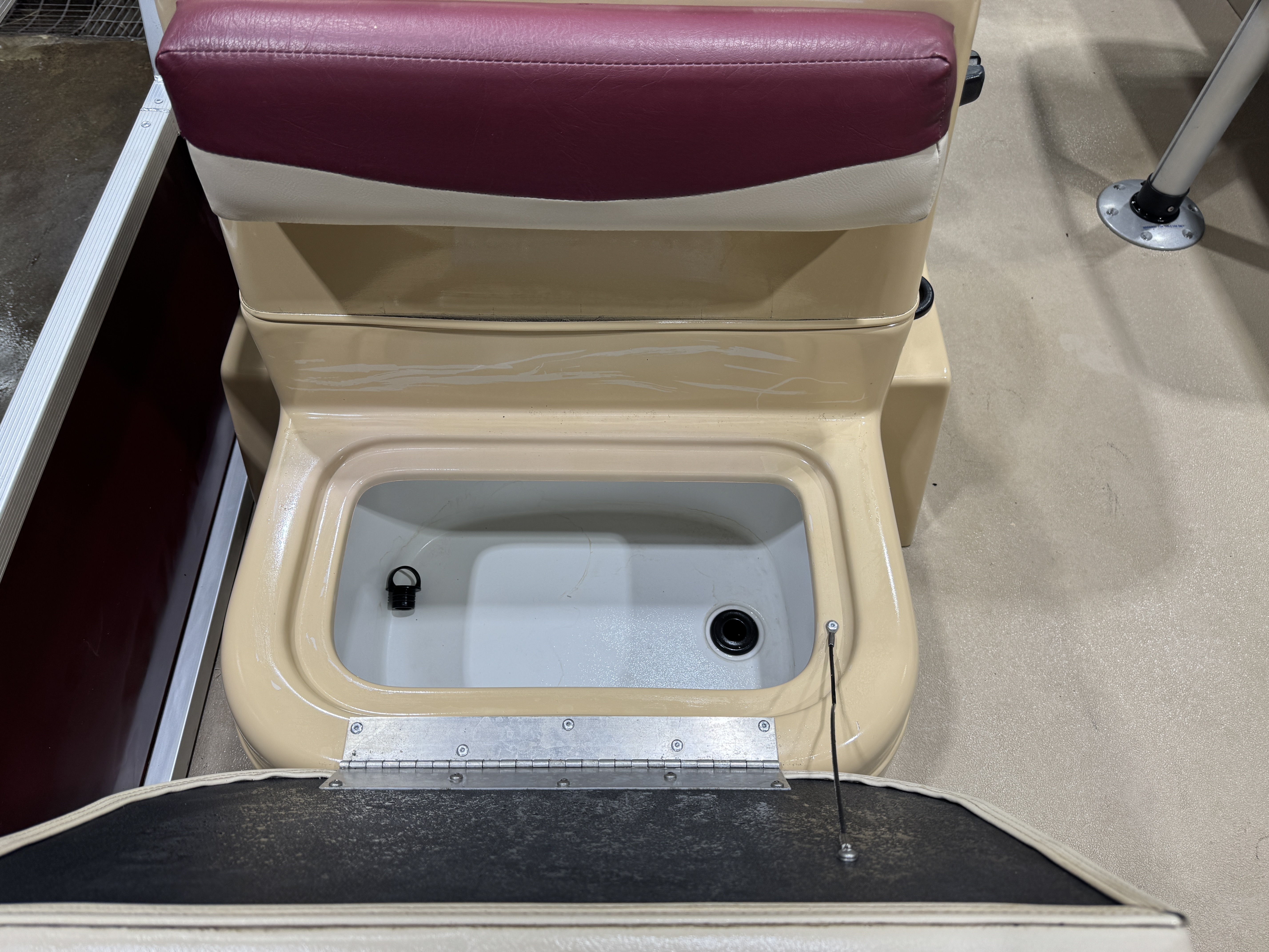 helm with a livewell underneath the seat cushion. The helm features a