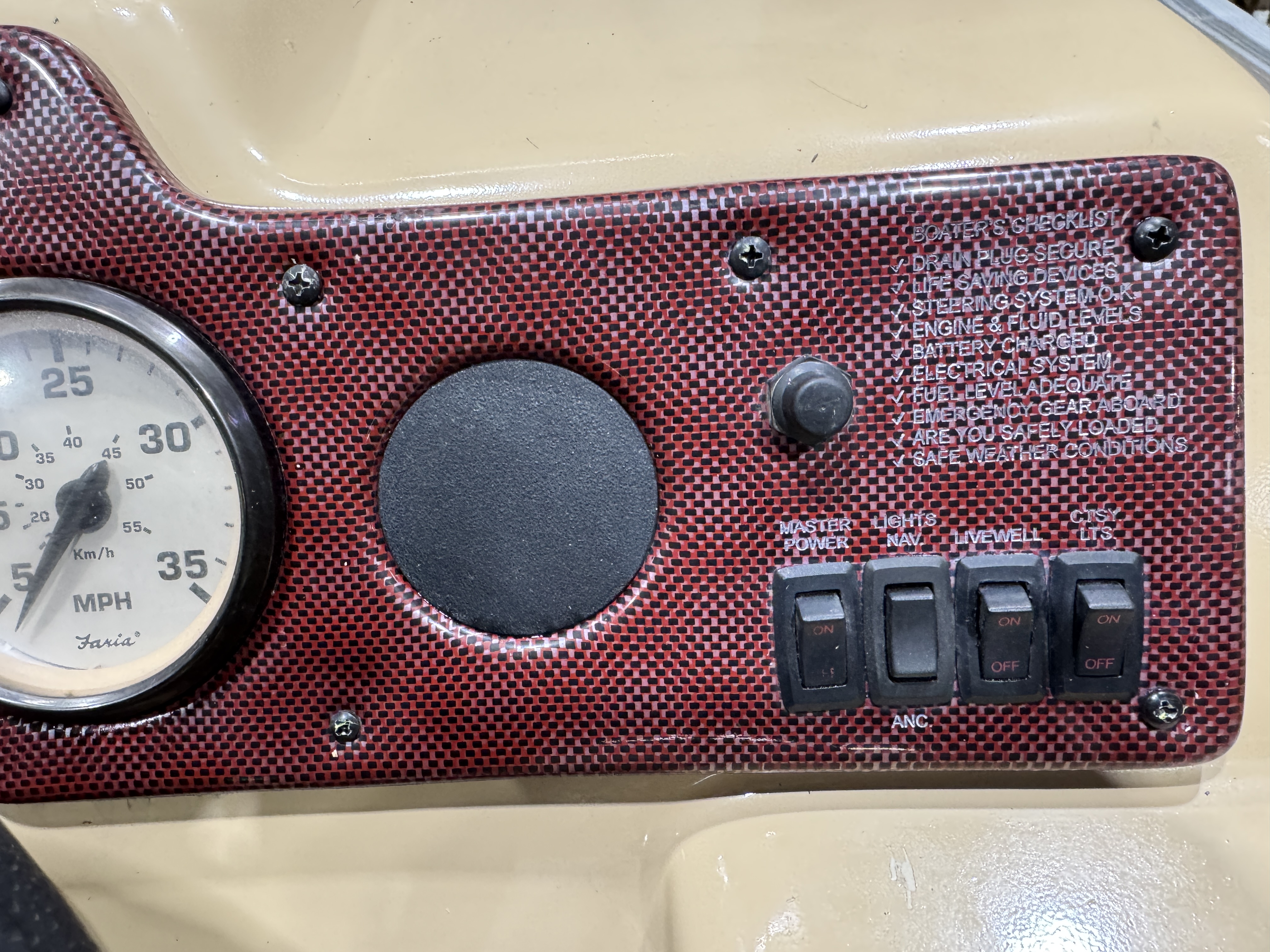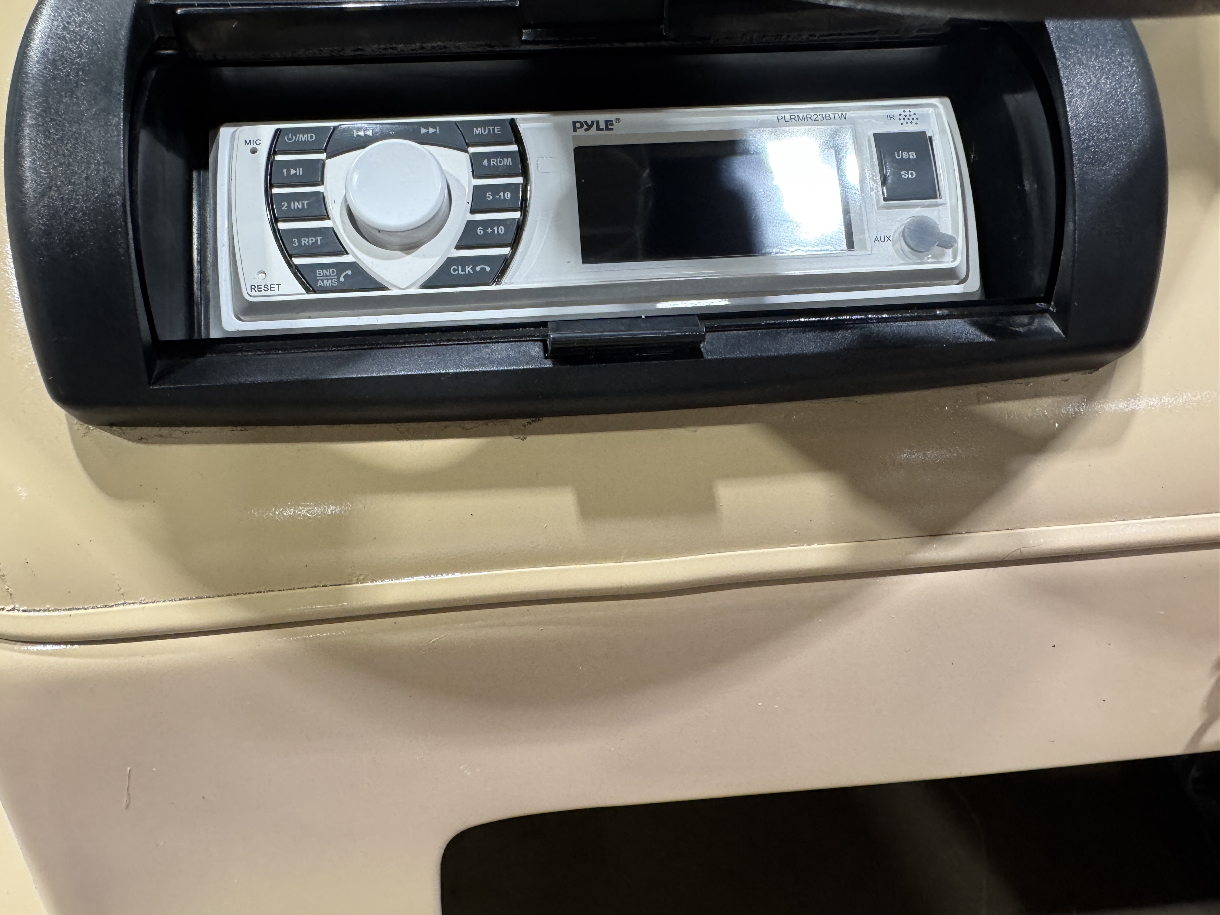 Speedometer, Tachometer, and Fuel gauge. There is a Pyle Bluetooth audio stereo
