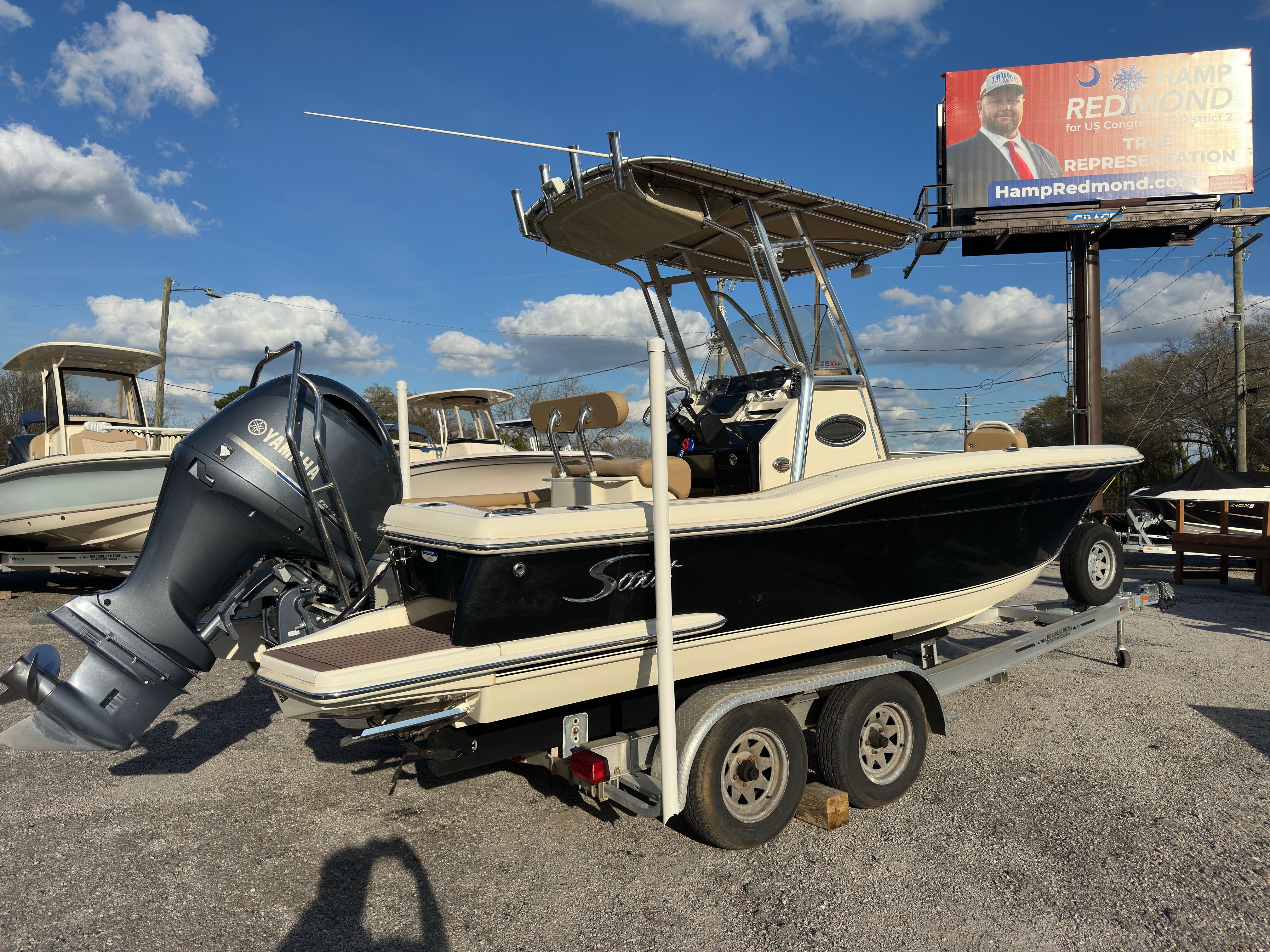2012 Scout 225 XSF with Yamaha F-200 and Wesco tandem axle trailer. Boat is in excellent condition, freshwater only and stored indoors. Very low hours! Max HP: 250 hp / 187 kw