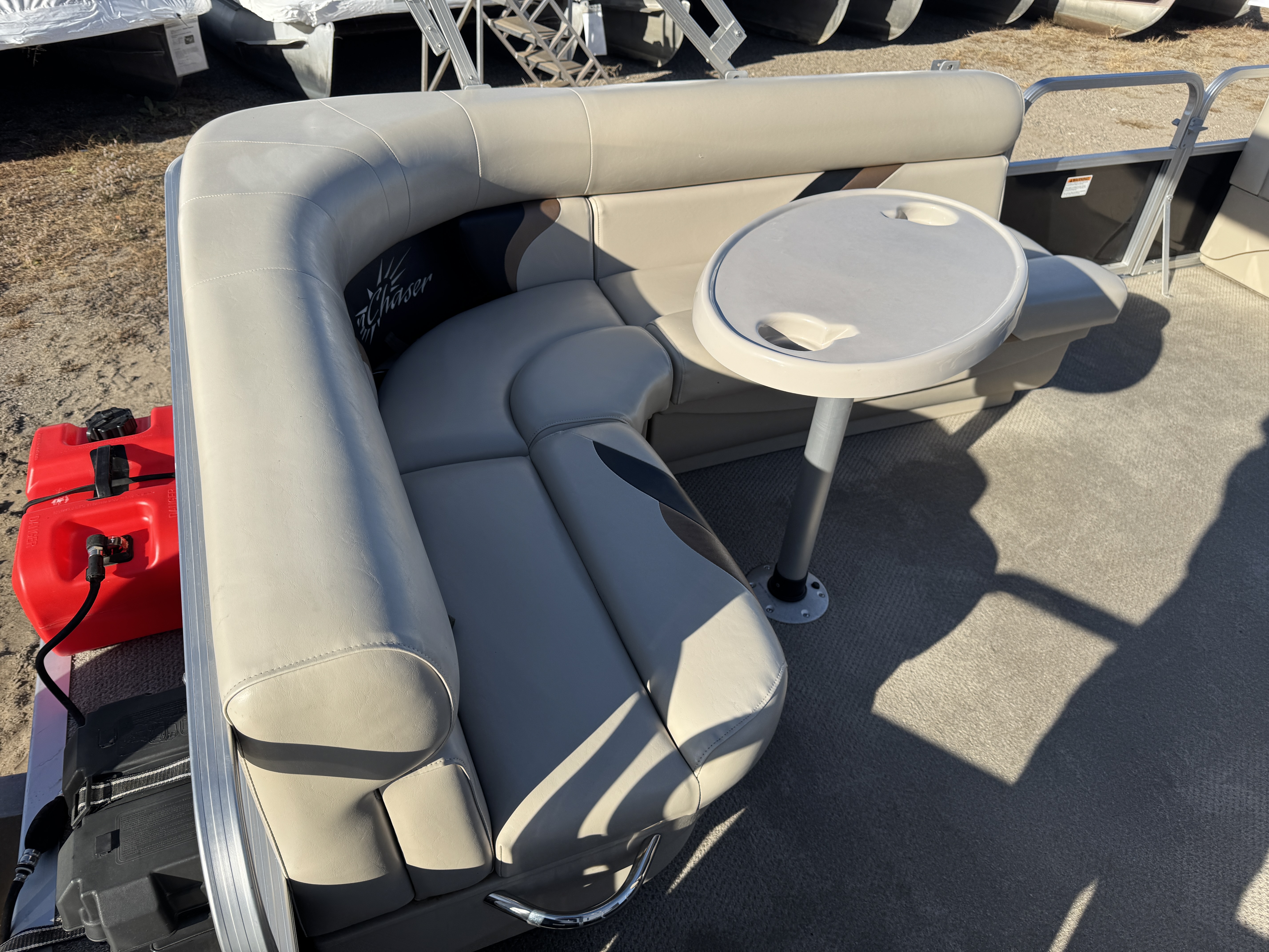 cruise model pontoon features 2 couches up front along with an L-shaped couch