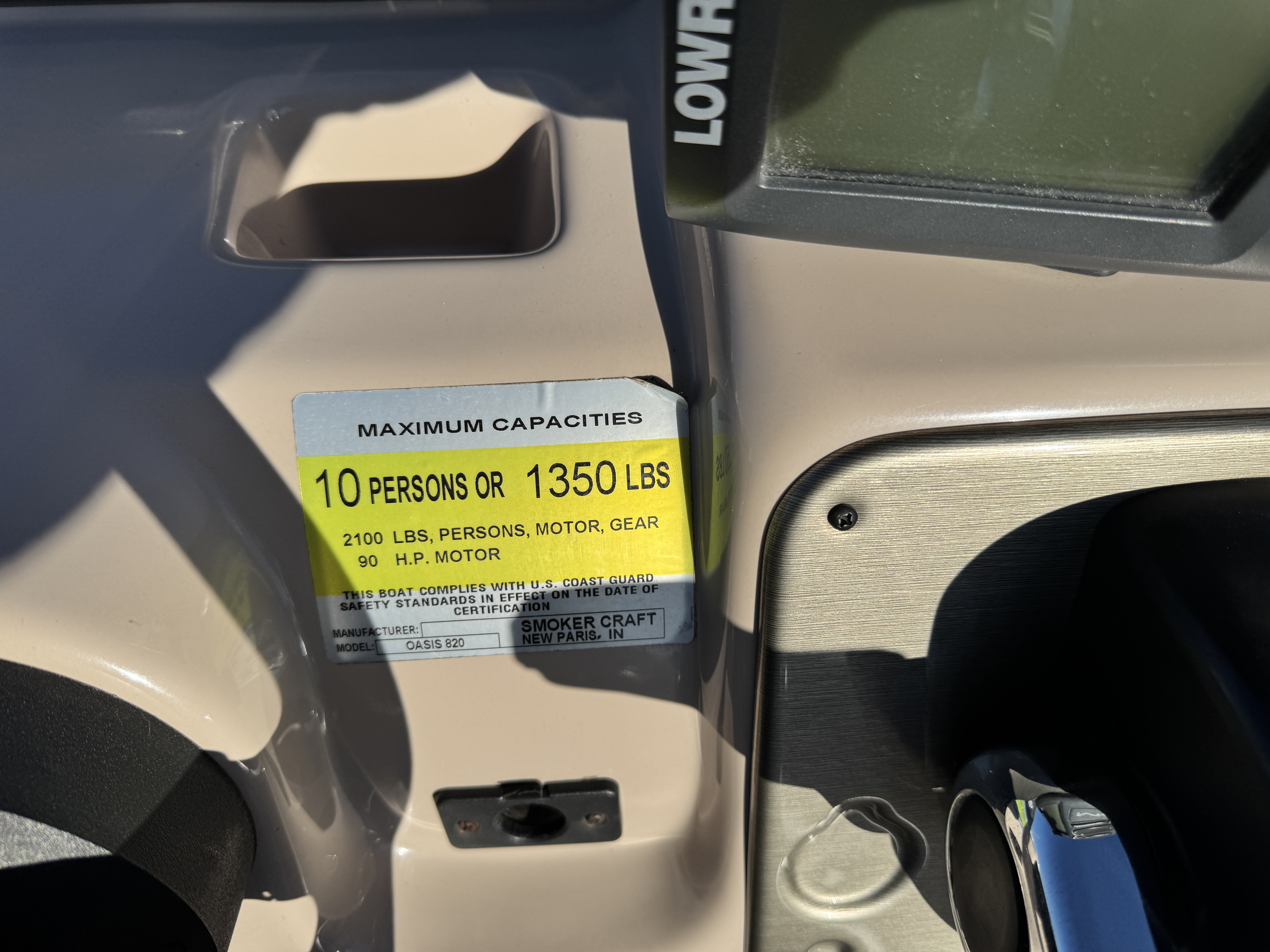 2012 SunChaser Oasis 820 Pontoon with 50HP Yamaha Fourstroke EFI Outboard. This