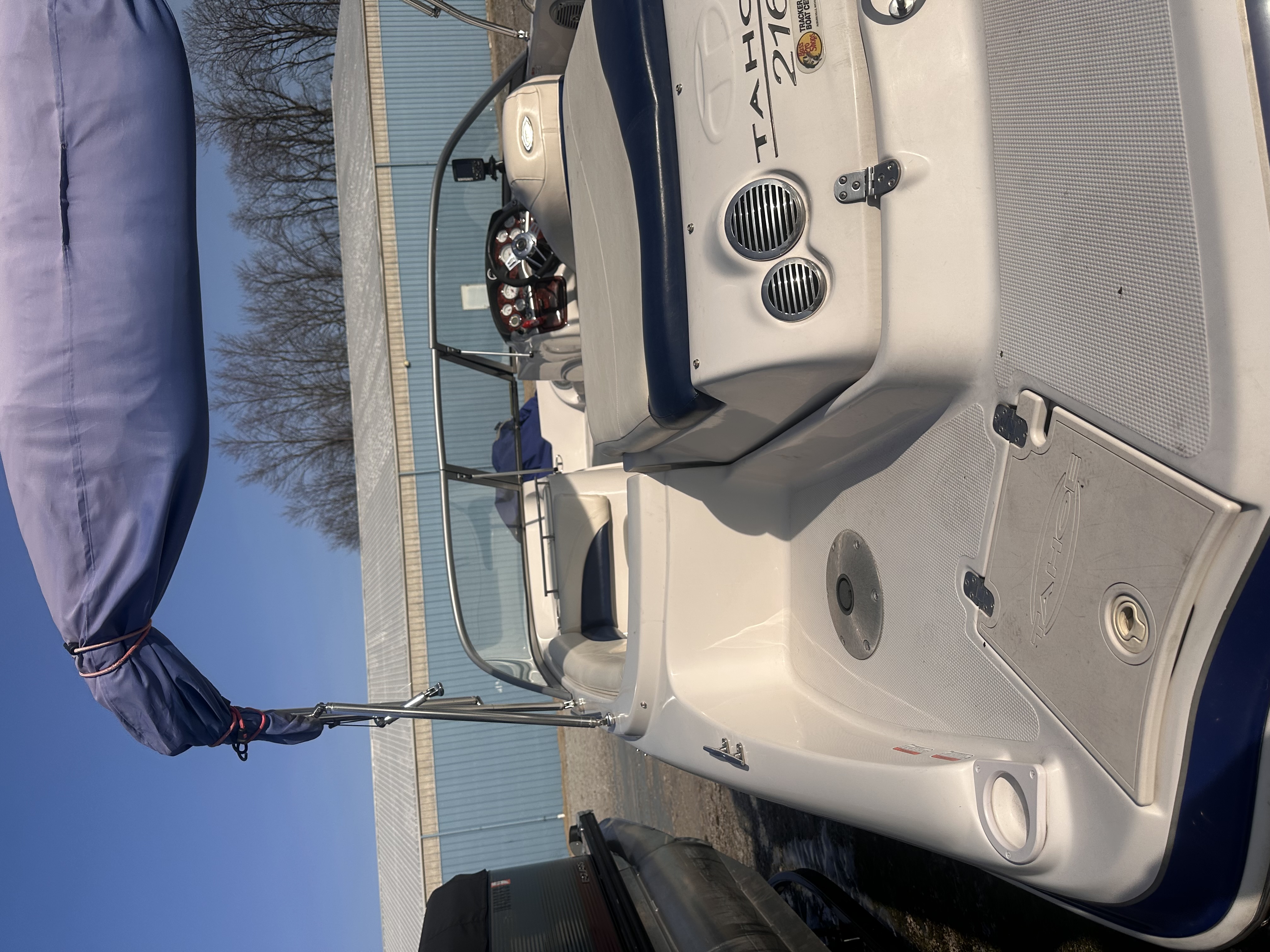 The 2012 Tahoe 216 delivers the perfect blend of deck boat space and runabout performance. Powered by a strong MerCruiser 5.0 MPI V8, this boat offers smooth acceleration, reliable fuel injected power, and the versatility families love. With its wide open layout, generous seating, and tons of storage, the 216 is built for cruising, swimming, watersports, and full day lake adventures.