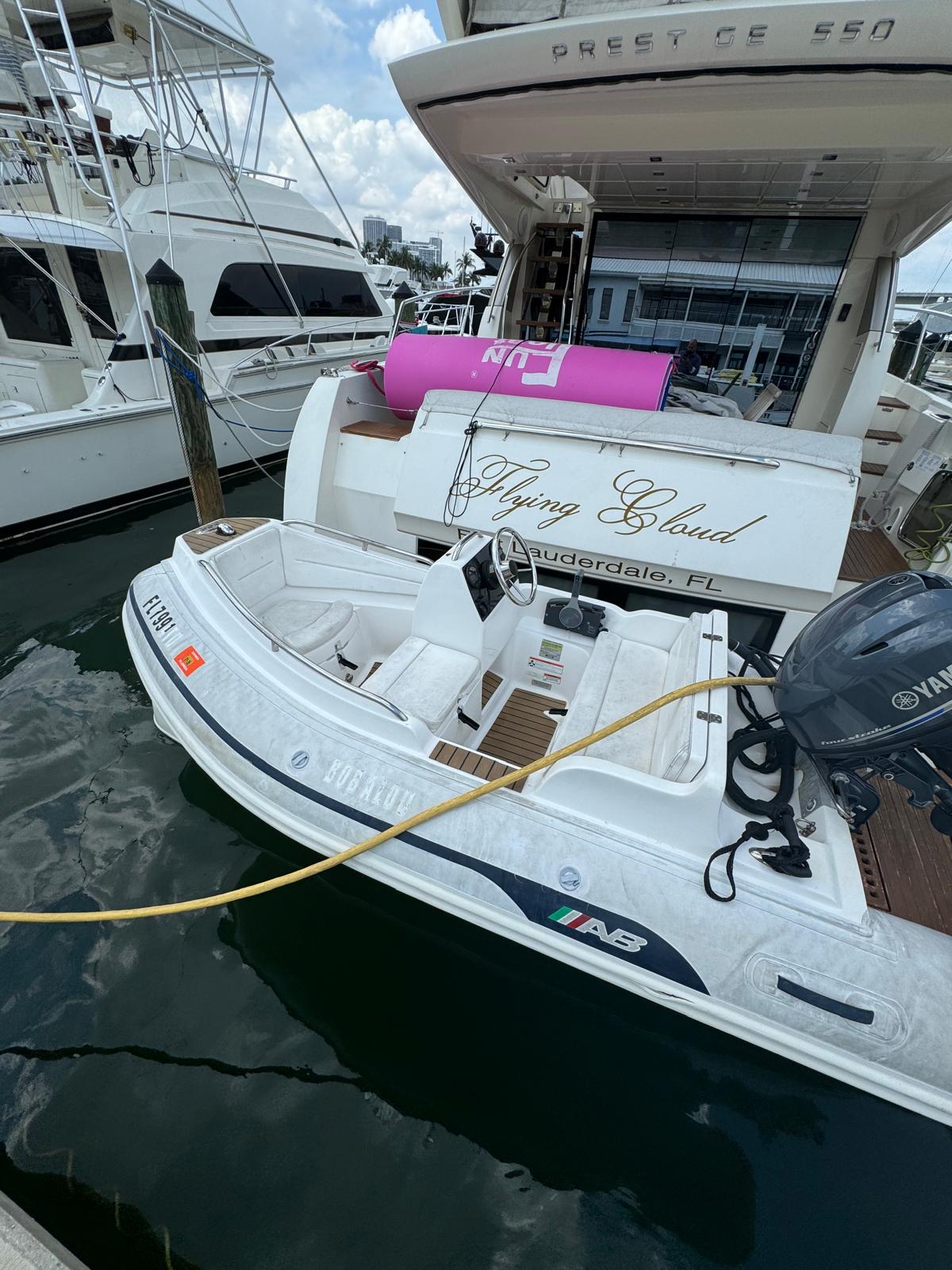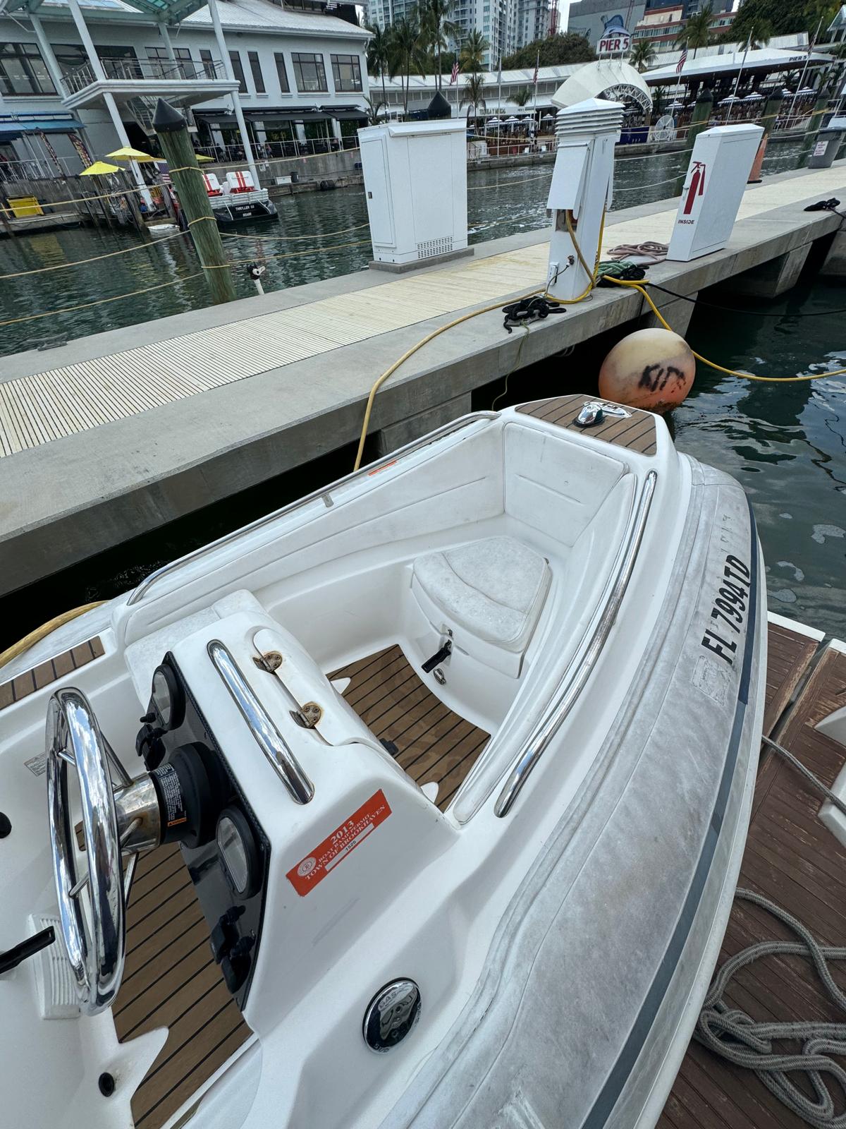This dinghy is powered by a dependable 2013 Yamaha 40 HP 4-Stroke outboard, which is perfect for zipping around Biscayne Bay, towing watersports, or serving as a fast tender. The 4-stroke engine is fuel-efficient, quiet, and known for its reliability.