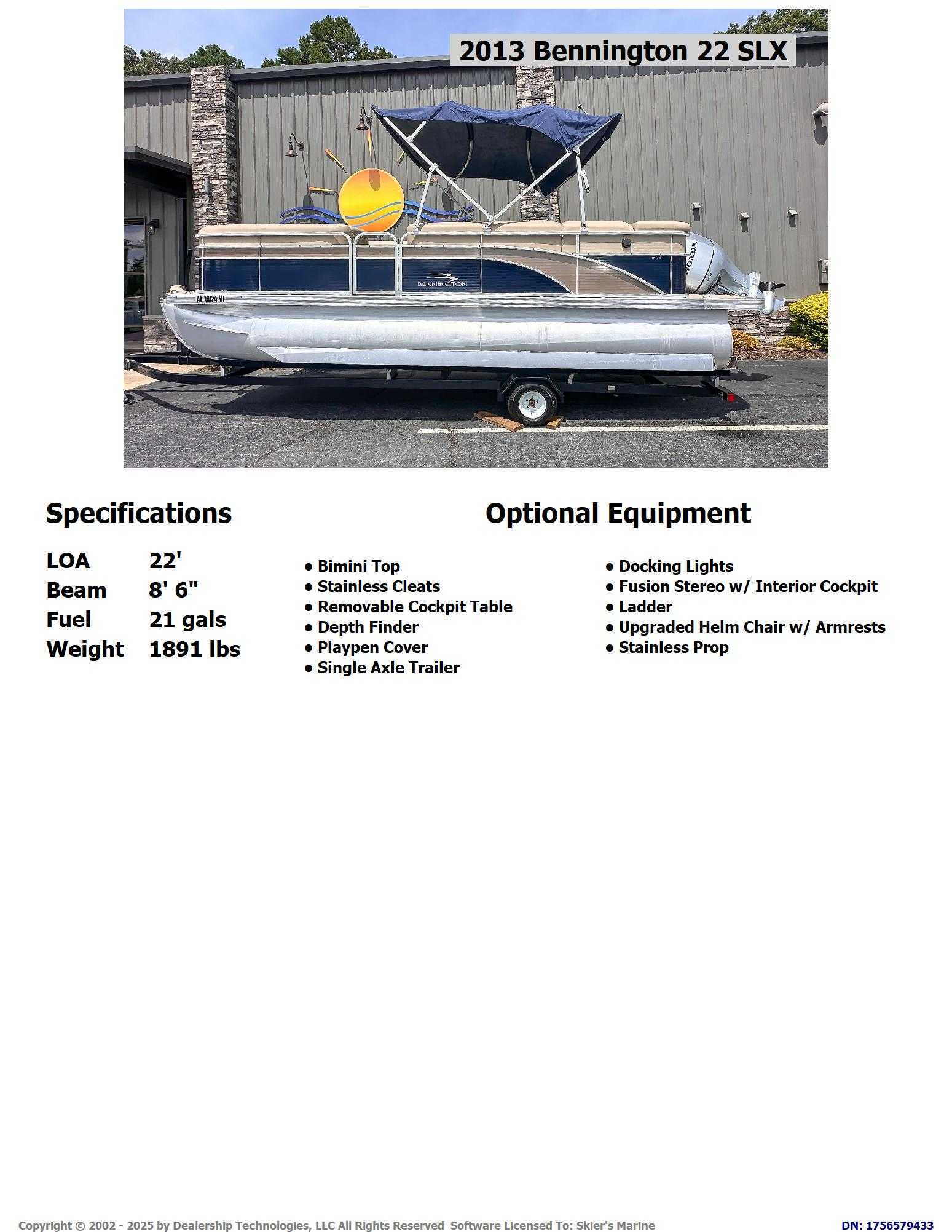 2013 Bennington 22 Slx