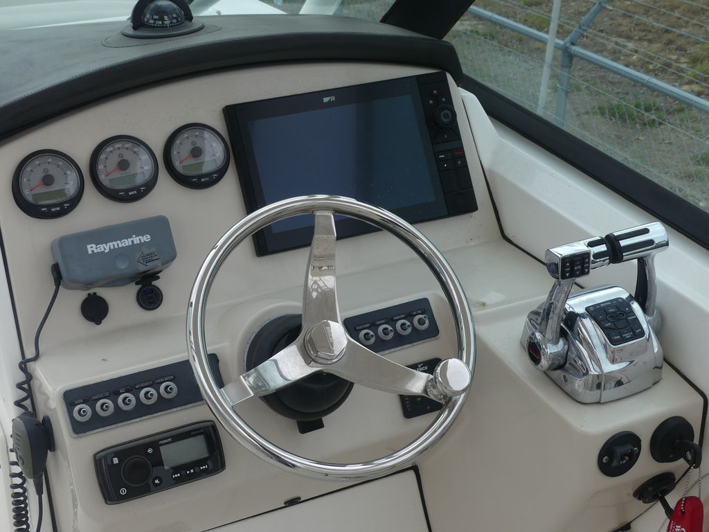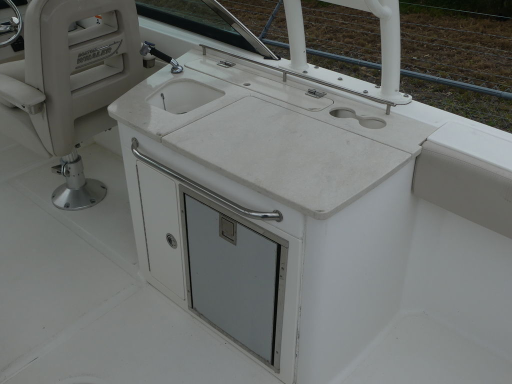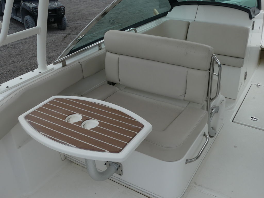 Power across the saltwater with the standard 150-hp dual Mercury FourStroke Verado engines and a 175-gallon fuel tank, and rest assured that the ride will be an absolute pleasure for your guests, thanks to an extensive bow seating area with lounge backrests. For those who like to entertain on a cruise, you'll be the host with the most. An optional summer kitchen comes with several luxury touches, such as a refrigerator, electric grill and tool holders.