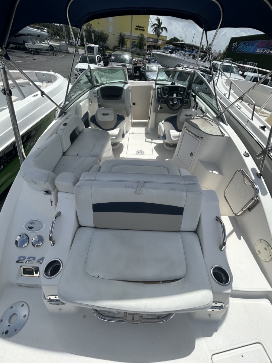 The Chaparral Sunesta 223 is the perfect blend of sportiness, comfort, and functionality. This 2013 model is powered by a Volvo Penta 5.0L V8 (270 HP) stern drive engine with only 40 hours of use, making it an outstanding option for buyers looking for like-new performance at a pre-owned price.