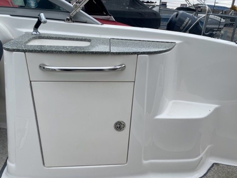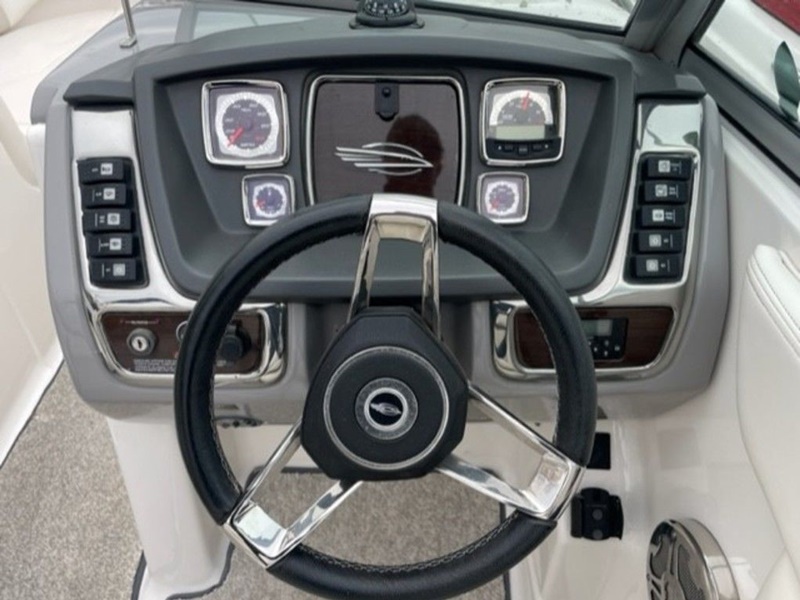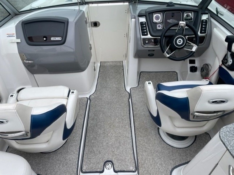 One owner and loaded with extras. Dual Batteries, Mercruiser 350 Magnum With Bravo 3 Twin Ss Propller, Blue Led Cockpit Lighting, Oversize Enclosed Head With Pump Out Porta Potti, Snap In Matting, Pressure Water System, Jl Audio Premium Sound System With 12" Sub and Amp, Battery Charger and more.