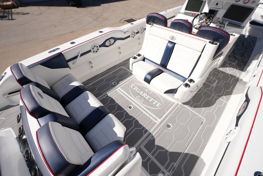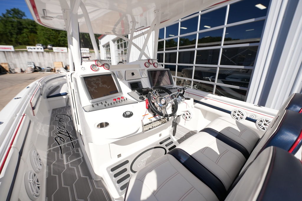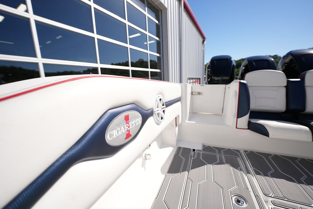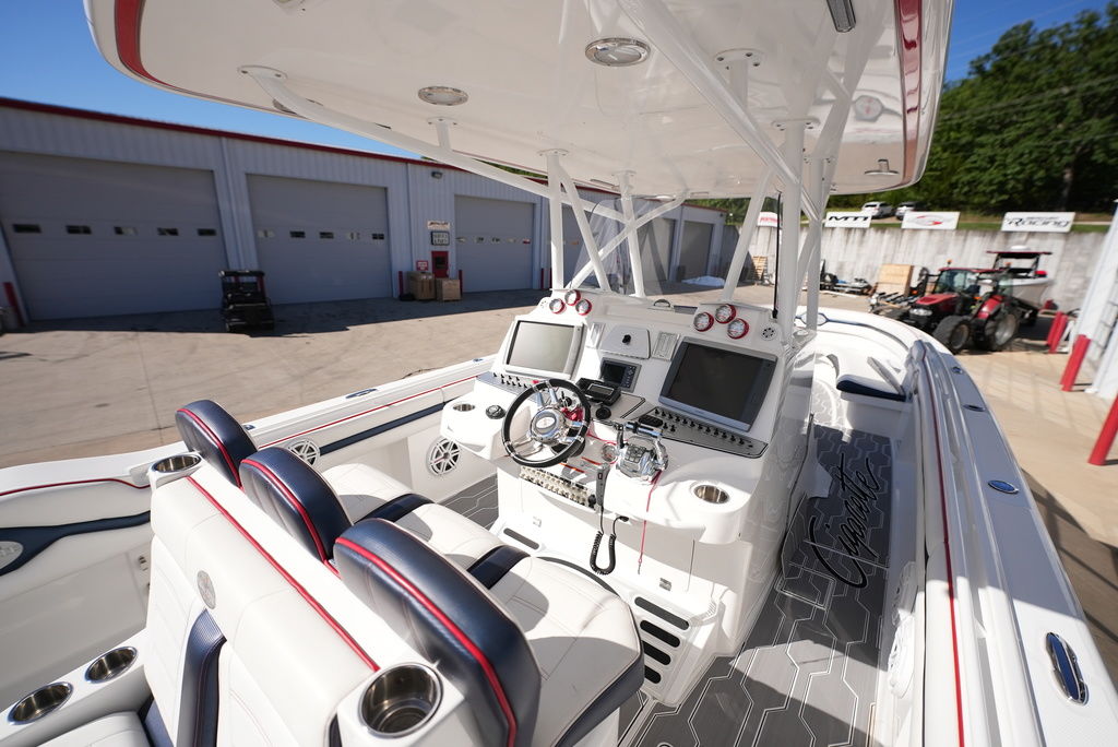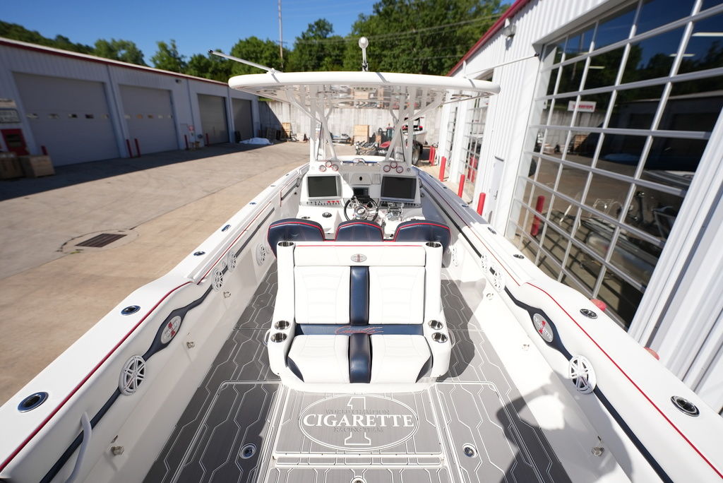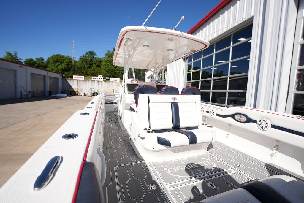 2013 Cigarette 39 Top Fish Powered by 300 Mercury Verados w/ 188 original hours, kplanes, underwater LED lights, Smartcraft Vessel View, (2) Garmin GPS, VHF Radio, Fusion/JL Audio stereo, windlass anchor, shore power, remote battery switches on dash, battery charger, Sea Deck flooring, head with holding tank and pump-out, trailer available. Financing and transportation available.