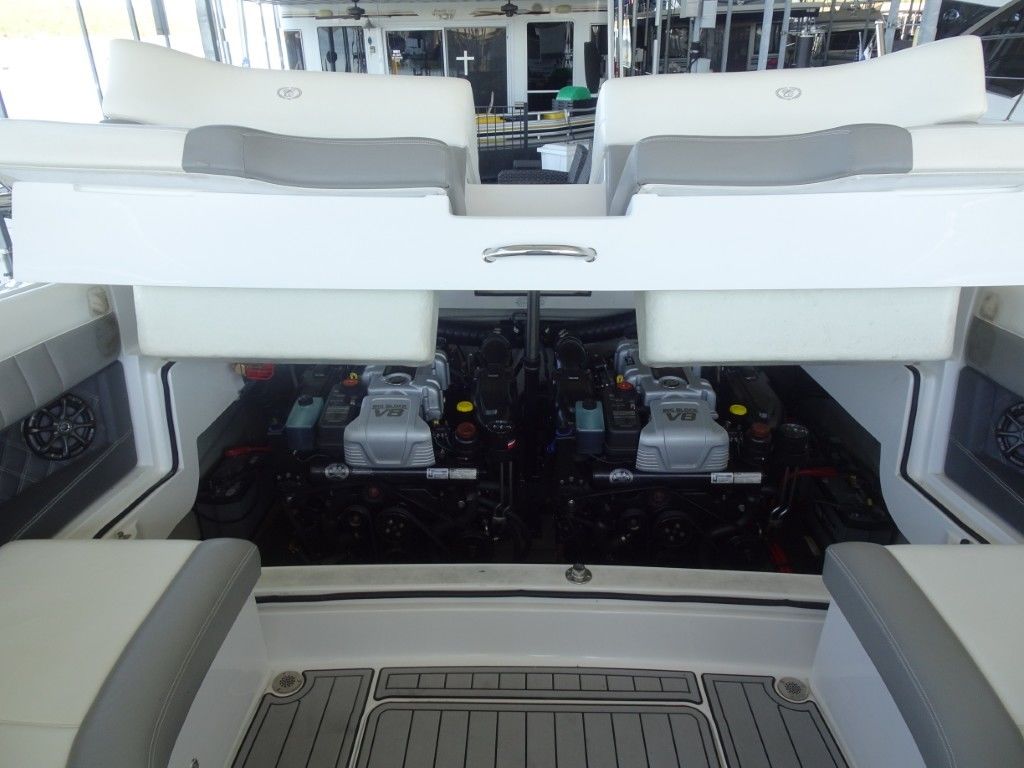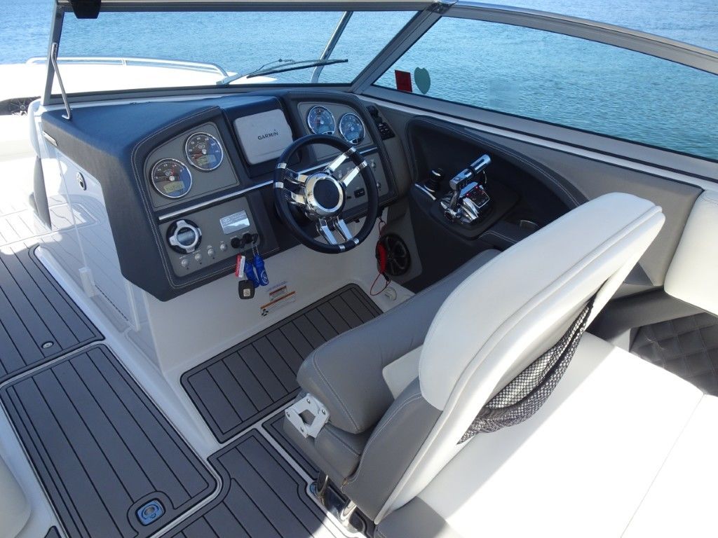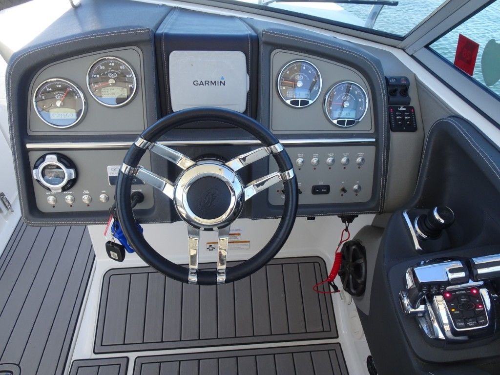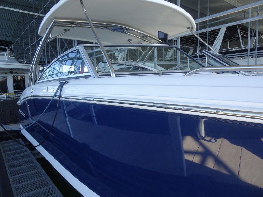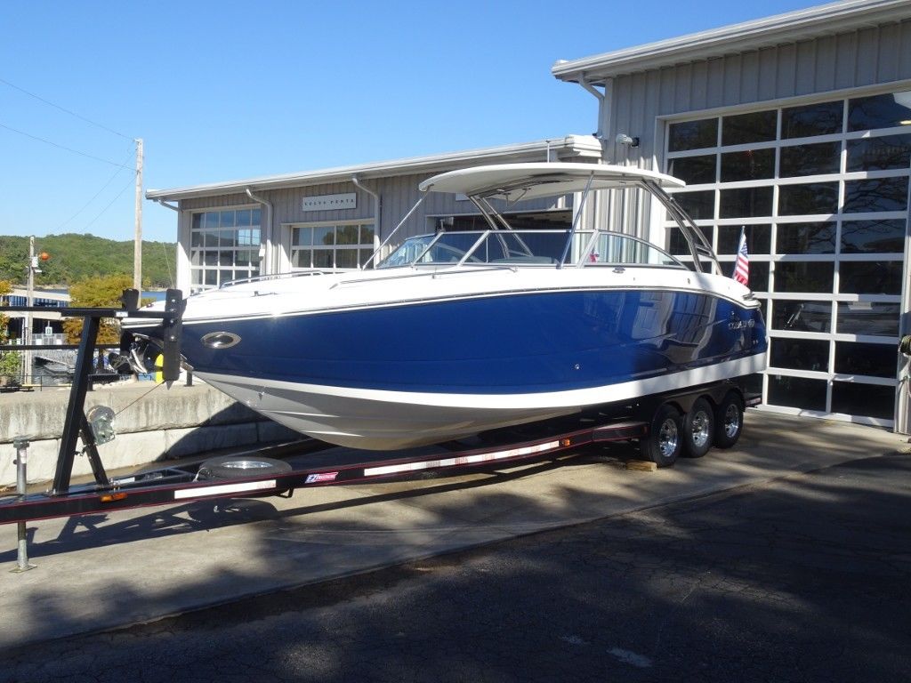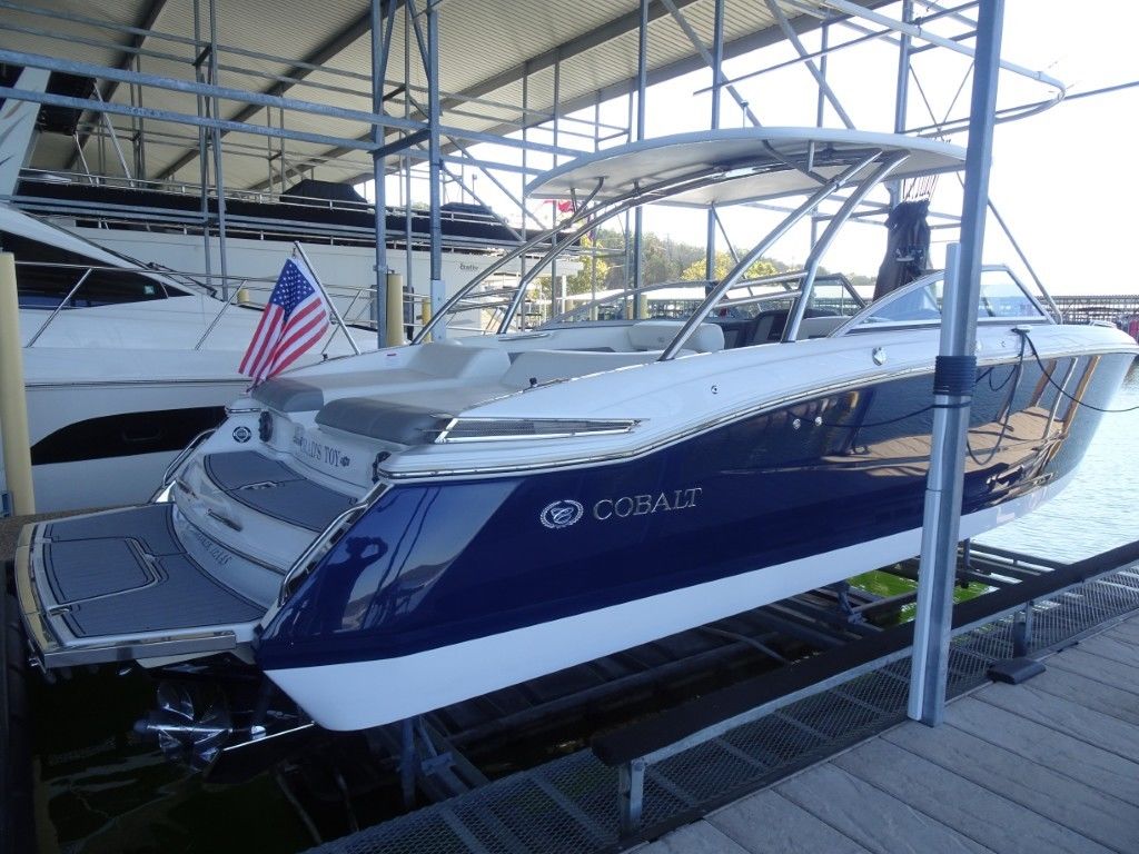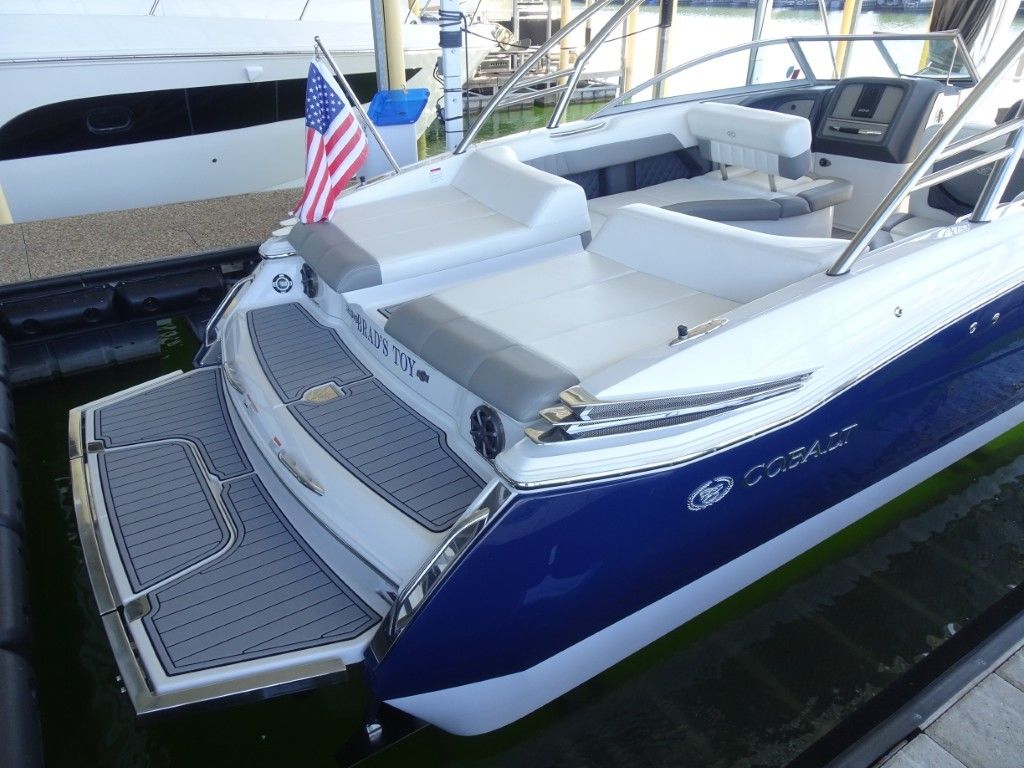 This is the nicest and most well-equipped Cobalt 296 on the market. It is an immaculate, one-owner 2013 Cobalt 296 in Classic Navy and Summit White Interior. It is powered by twin Mercruiser 8.2MAG HO's (430hp each) with only 85 hours and has the AXIUS JOYSTICK and HARDTOP. It comes with a triple-axle EZ Loader trailer and has the following options.