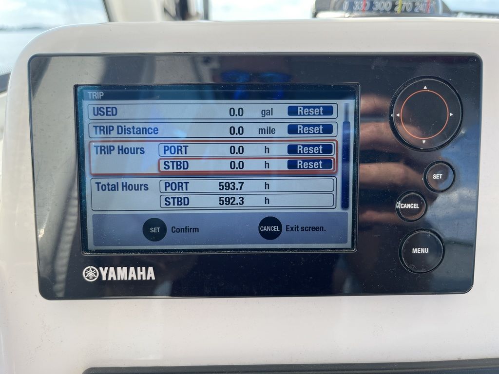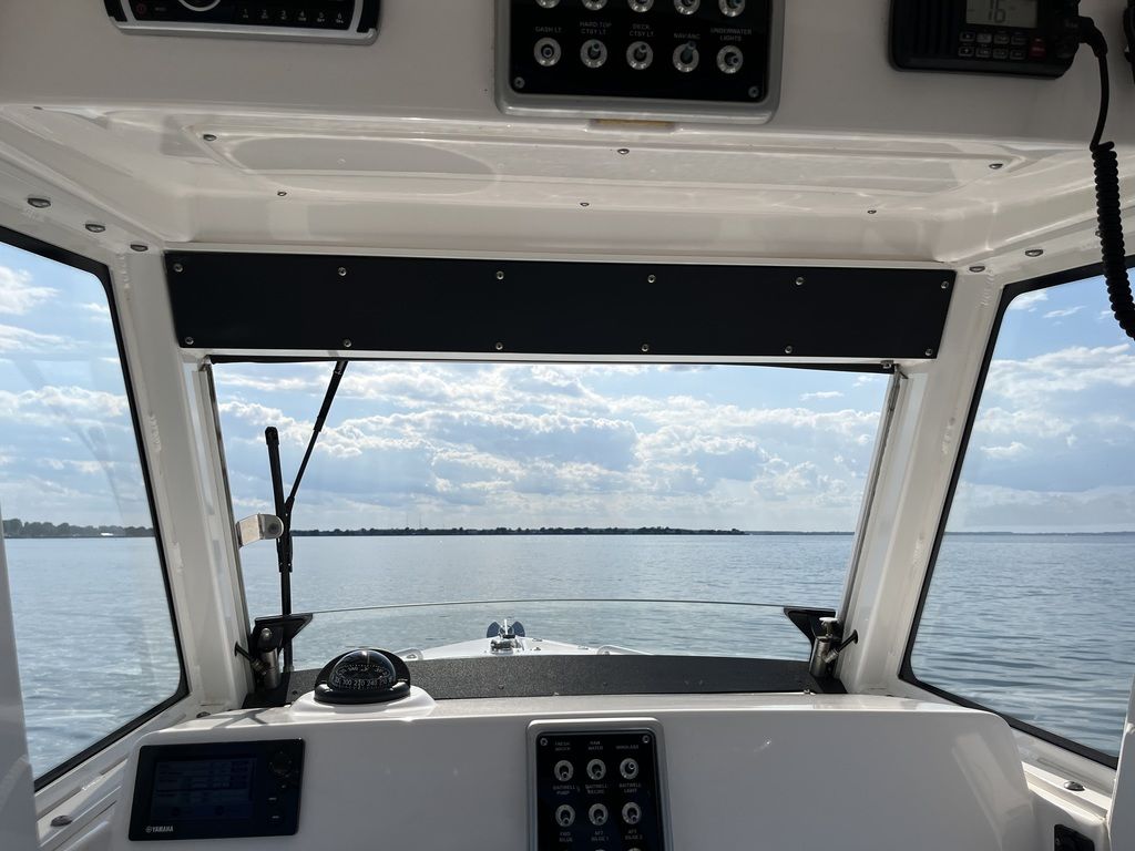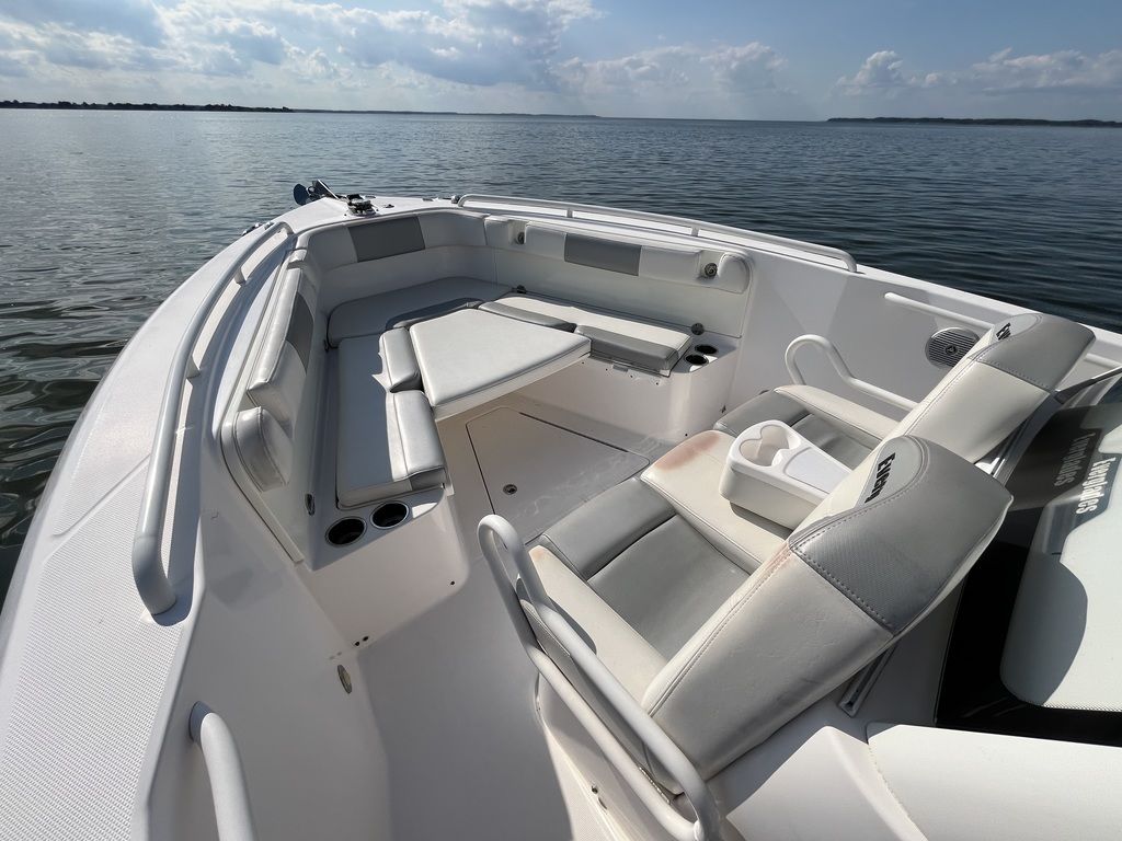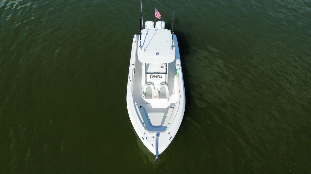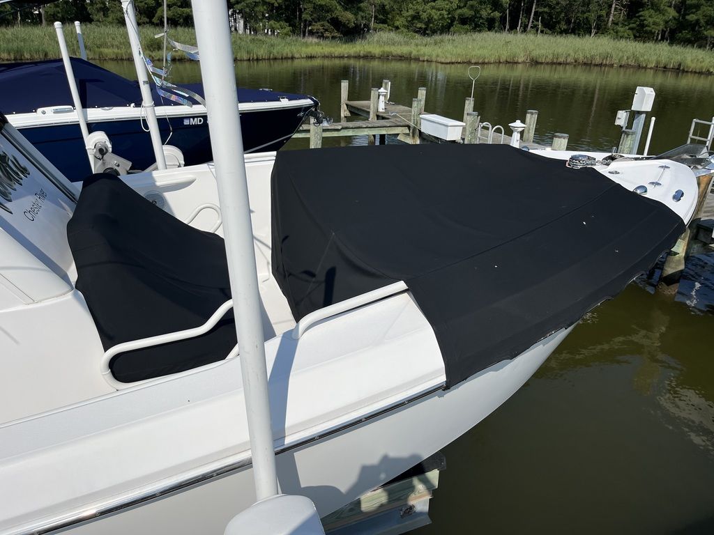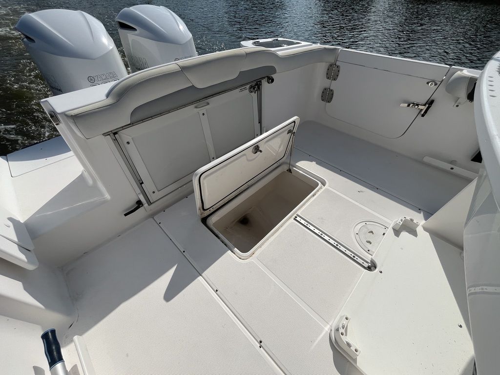Unsinkable 10-year transferable hull warranty Patented closed molded RAMCAP® construction process Self-bailing cockpit Variable deadrise deep v-hull NMMA, ABYC, and CE certified No wood construction – all composite High density, closed cell, structural foam floatation Hull laminate – premium gel coat, vinyl-ester barrier coat, vinyl-ester skin coat, polyester print barrier and knitted biaxial fiberglass High density PVC composite transom Hull liner and deck mated perfectly for a rigid one-piece construction, adding to its long-term durability Hull liner completely finished inside with Class A surface Molded-in diamond non-skid Rigging troughs – molded-in and oversized for easy access ABS backing used to receive self tapping screws and bolts Aluminum frame work – custom fabricated in house meeting stringent standards, sand blasted then powder coated using premium marine grade materials Gunwale boards – all hand laid and extra heavy-duty Caulking – high grade, non-yellowing, mildew resistant polyurethane (not silicone bath caulk) Wire harnesses – manufactured in house using marine grade, tinned copper wire, high grade heat shrink connectors and waterproof Deutsch plugs Circuit protection – circuit breakers or fuses protect all electrical circuits Heavy-duty rub rail with 316 stainless steel insert and end caps 316-L stainless steel and chrome plated fasteners for additional corrosion and stain resistance All hardware bedded or gasketed to resist crevice corrosion 316-L cast stainless steel hinges and latches Heavy-duty, welded bow and stern eyes, bedded and sealed in polyurethane Upholstery – extra-heavy vinyl with acrylic top coat, Tenara™ thread, and anti-mildew backing - adhered to highdensity plastic backing (no wood) with flow through foam cushions Bronze high speed intake strainers Painted aluminum 200 gal fuel tankThis boat comes with the following options: