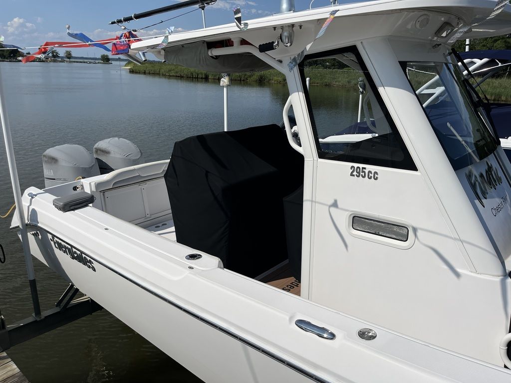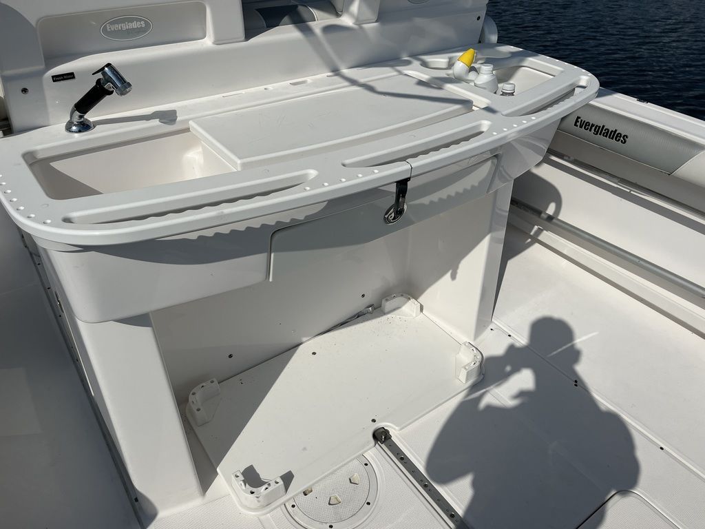 Like all Everglades, the 295cc was designed for comfort and convenience and features Everglades' unsinkable RAMCAP® construction. Standards include a head compartment with sink, shower, and china bowl head with macerator and holding tank. A stereo with speakers and windlass stainless steel anchor, rode, and chain are also included.
