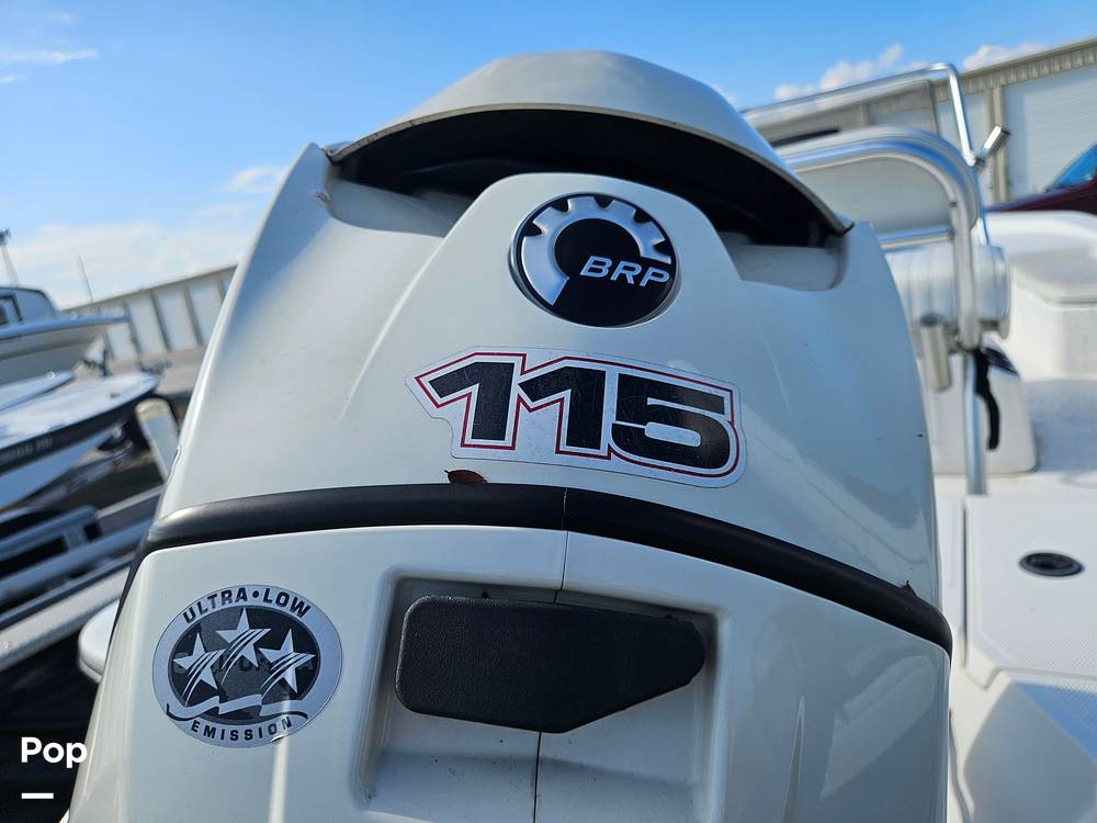 This 2013 Frontier 190 comes with a Evinrude E-TEC engine with 115 HP and a cruising speed of 28 MPH, 43-gallon fuel tank, stainless steel prop, trolling motor, power pole, jack plate, bait well, bilge pump, folding stern ladder, a fish finder, windshield and steering wheel with a knob.