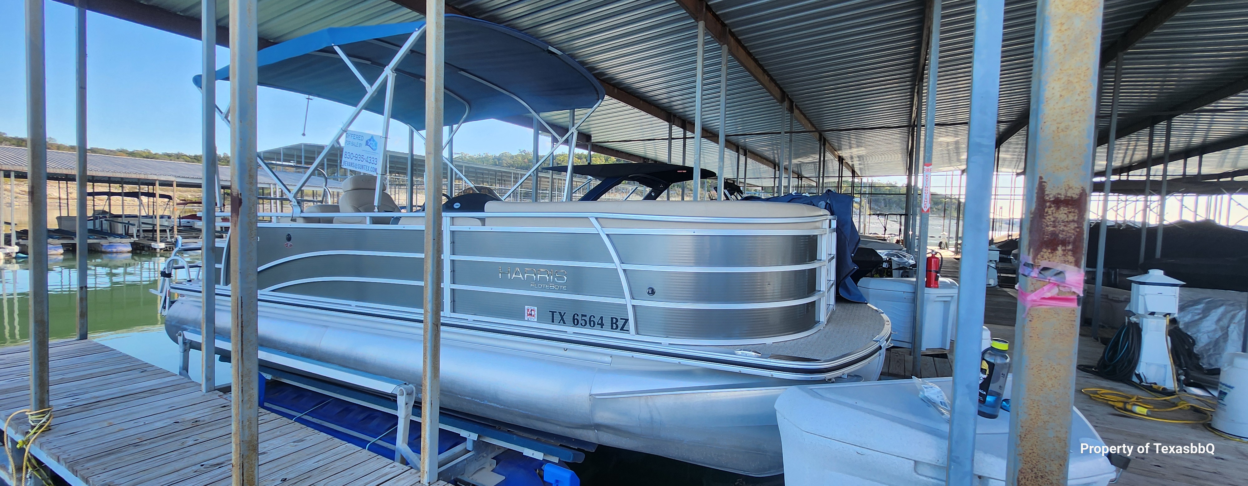 Good day and thanks for stopping in. This 2021 Harris Flote-Bote, Is located at Cranes Mill Marina on a Hydro-Hoist Lift. You have the option of taking over the slip lease with additional purchase of lift, Seller is Negotiable on that. Equipped with a Mercury 150 4 stroke. Tri-toon has a Two-tear Tow bar, boat cover, stereo, interior lighting. No Trailer. Comfortable seating and flooring. ECT... Give us call or email to schedule a Lake Test and or Showing. We also offer complimentary shuttle service to and from our local airport here in Canyon Lake, TX.