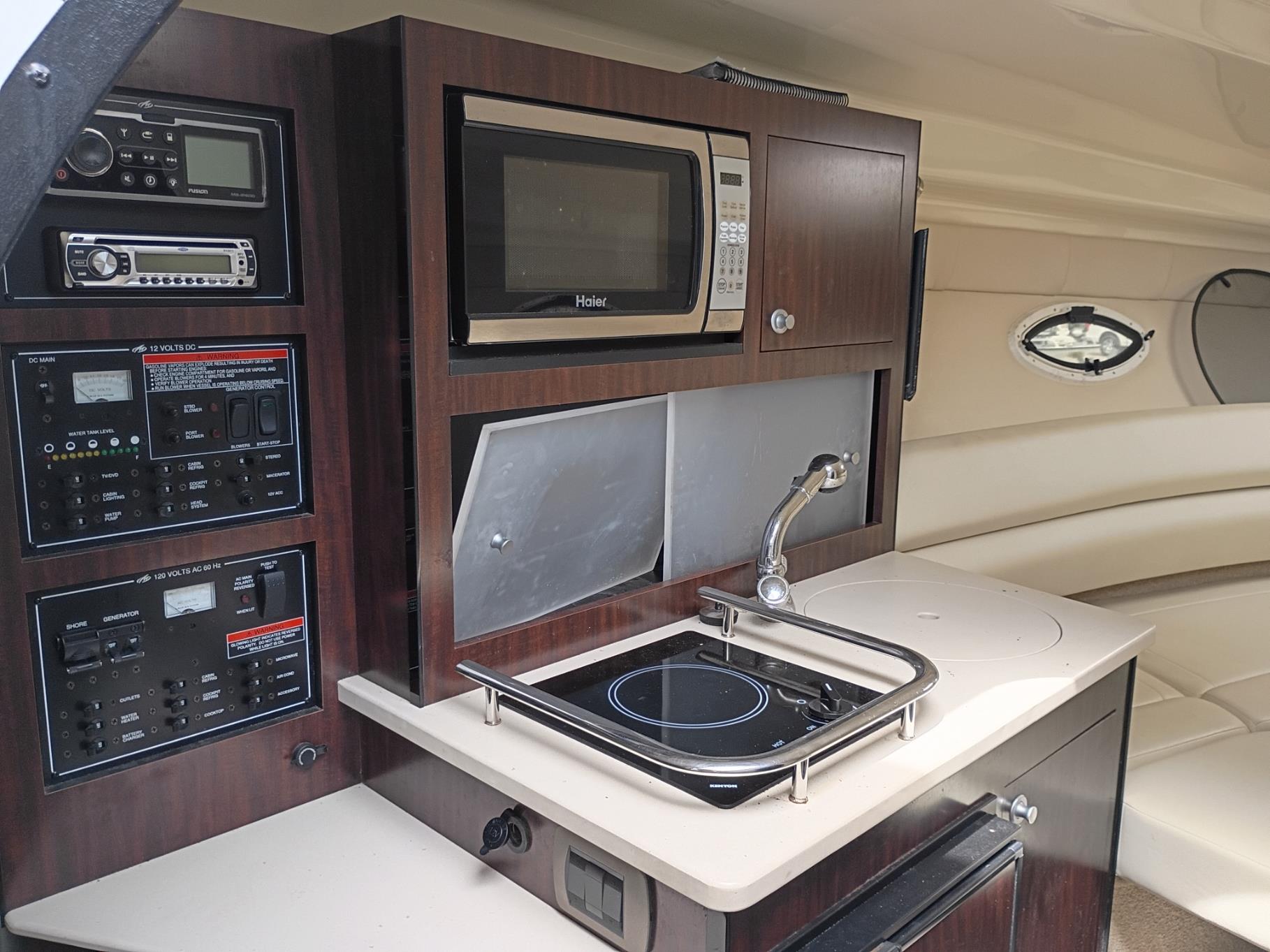 Galley: Includes a galley with a granite-like countertop, sink, microwave, and single-burner stove.
