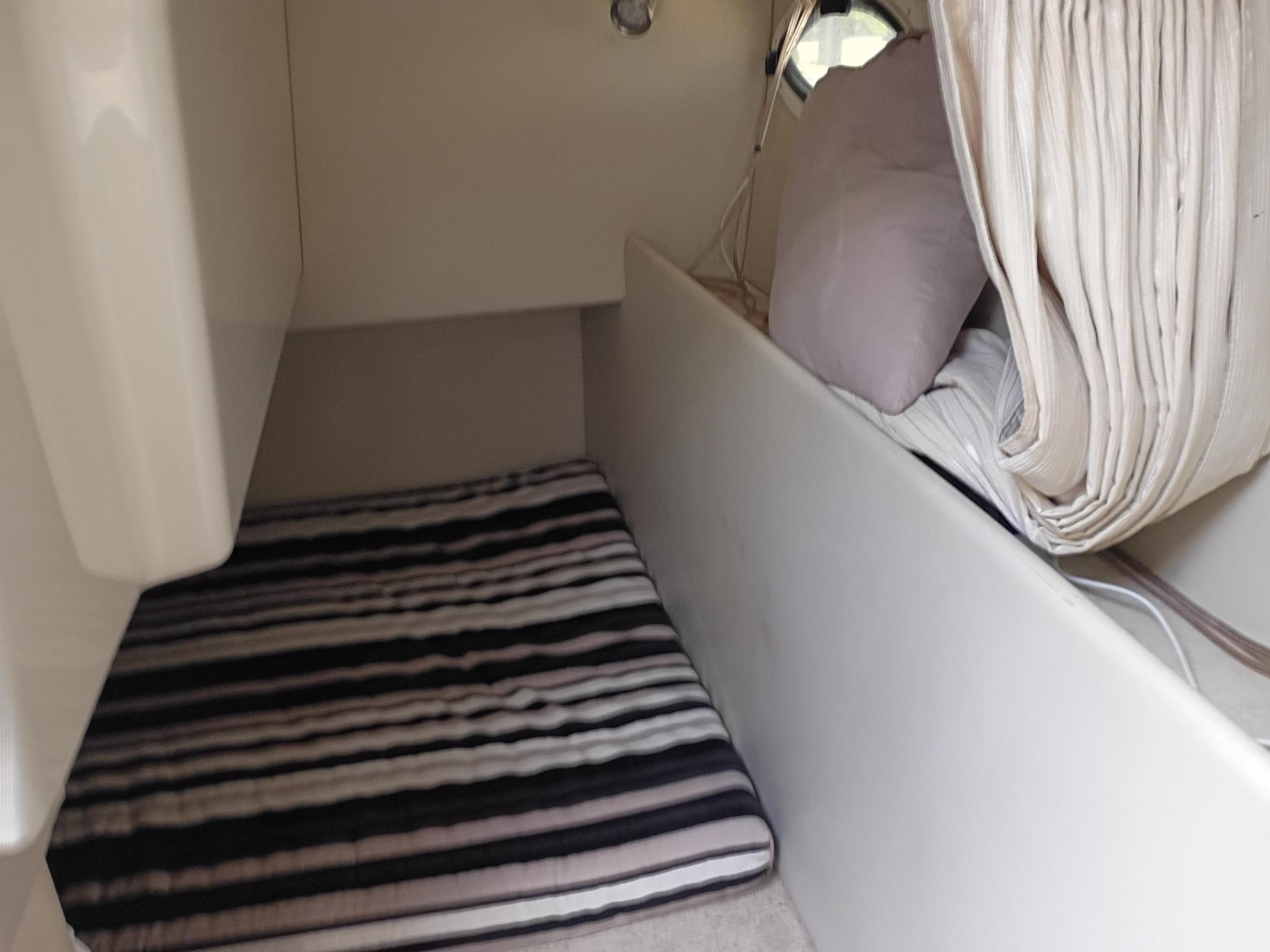 Cabin: Features a forward berth that converts into a seating or sleeping area, and an aft cabin with a double bed.