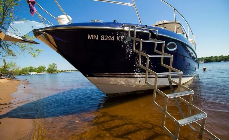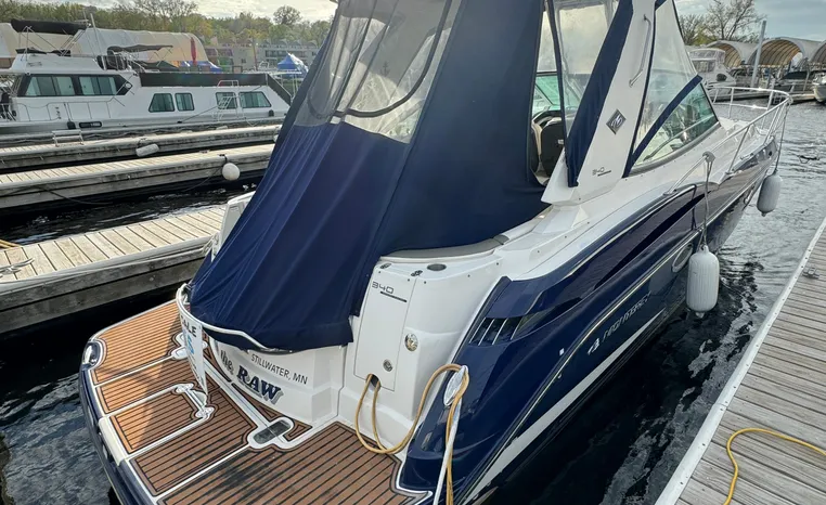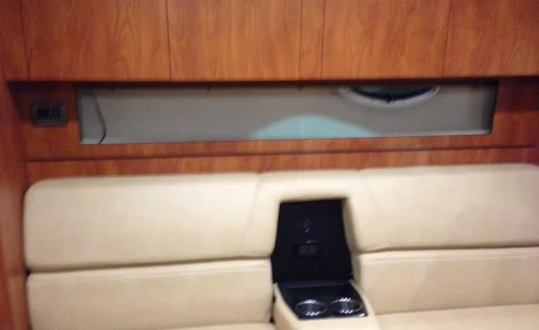 2013 Monterey 34 SY Hardtop Express, twin Mercruiser Magnum 300 HP, GM 350 CID, 6.2 litre, 730 approximate hours, Bravo III duo prop with Axius sterndrive control system, Kohler 5.0kw generator with sound shield, 165 approximate hours, dual 30 amp/125vac electrical shore service, two shore power cords, four batteries, Fireboy auto halon system, Marine Air reverse cycle air/heat, pressure water, water heater, Bemis head/shower/vanity, master stateroom forward with offset queen berth, guest stateroom mid-cabin with double berth, convertible sofa sleeps two, teak and holly cabin sole, white colored wall covering, tan upholstery, cherry interior, hatch screens, Fusion AM/FM/stereo /CD/Bluetooth player, single stainless sink, Isotherm 12vdc/115vac refrigerator/freezer, Kenyon two burner electric stove, Haier microwave oven, blue canvas, HDTP top with enclosure, additional new enclosure, Raymarine VHF marine radio, Raymarine digital depth finder, Raymarine GPS, Ritchie compass, RCL remote spotlight, bow cushion with cover, Plow style anchor, Lewmar electric windlass, four fenders, mooring lines, windshield wiper, arch, tilt steering wheel, cockpit table, cockpit wet bar with Isotherm refrigerator, walk thru windshield, transom shower, transom door, trim tabs, integral swim platform with extension, boarding ladder.