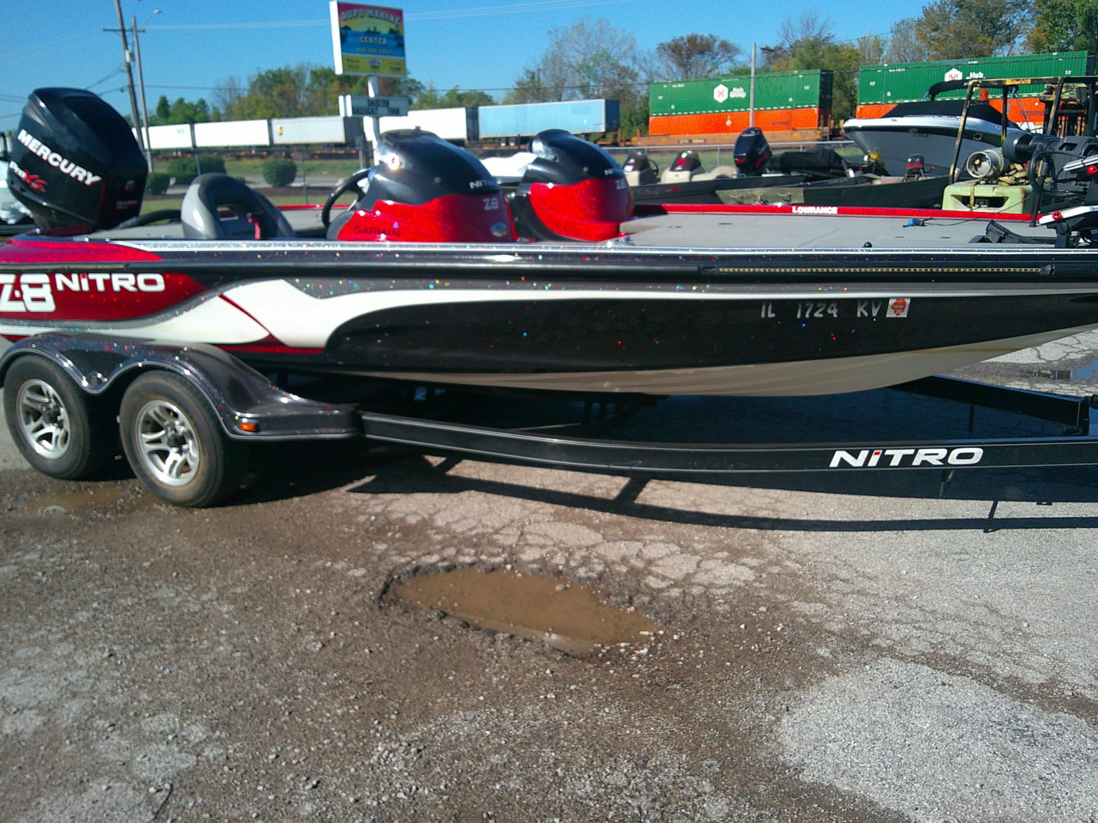 2013 Nitro Z-8, powered by a Mercury 250 ProXS,436 hours on motor, dual console, 3 seater, Lowrance Ghost, 2 Lowrance Elite 9, Garmin locator and Garmin Livescope. Tandem axle trailer with swing tongue.