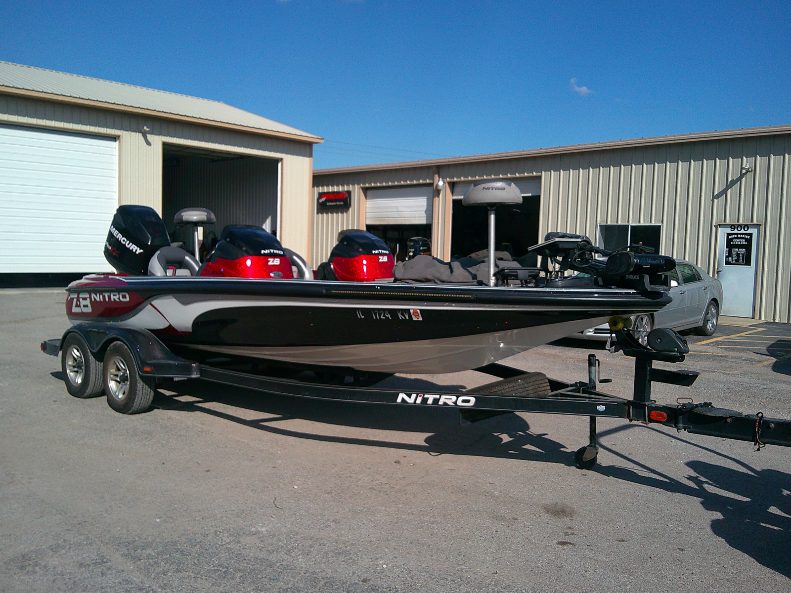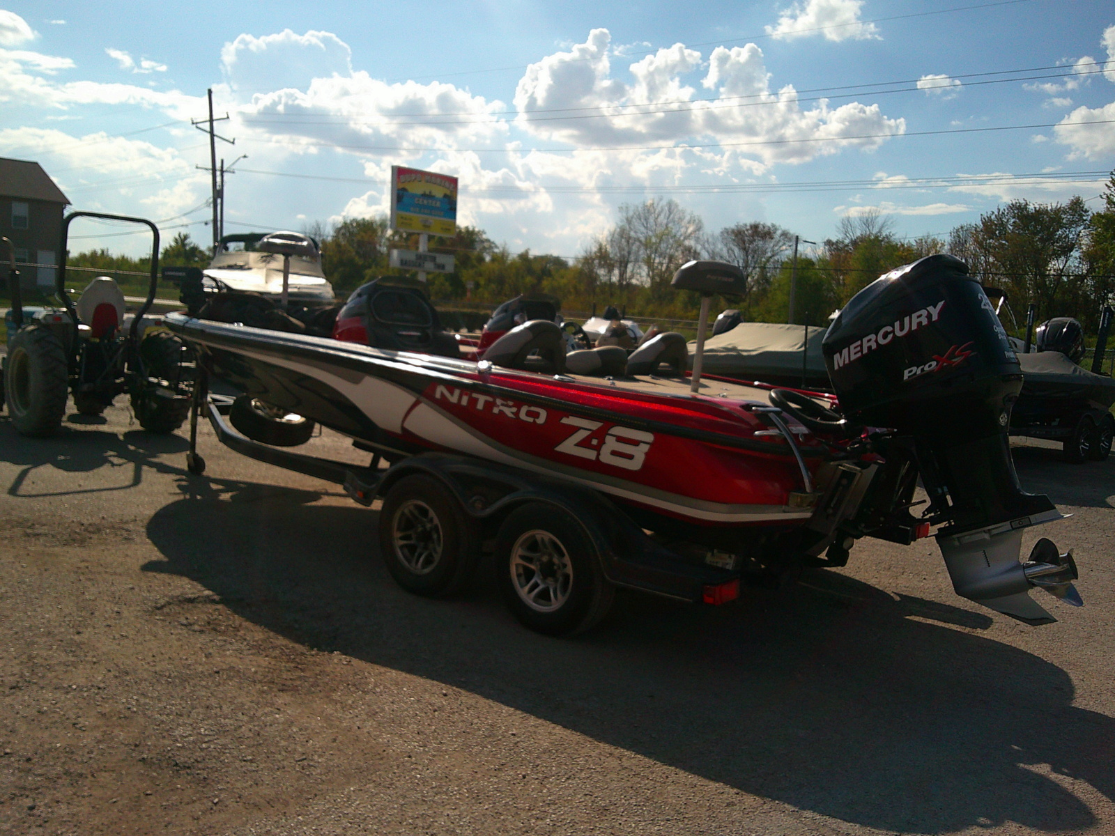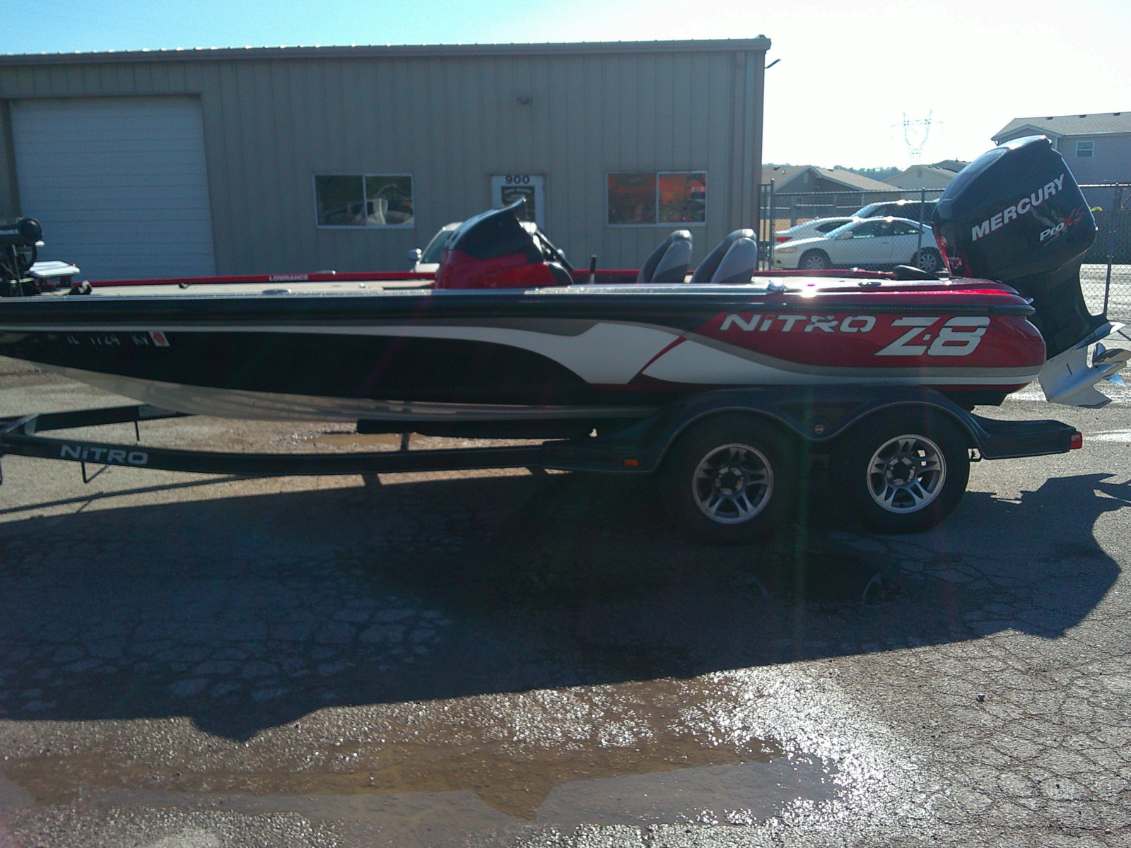 2013 Nitro Z-8, powered by a Mercury 250 ProXS,436 hours on motor, dual console, 3 seater, Lowrance Ghost, 2 Lowrance Elite 9, Garmin locator and Garmin Livescope. Tandem axle trailer with swing tongue.