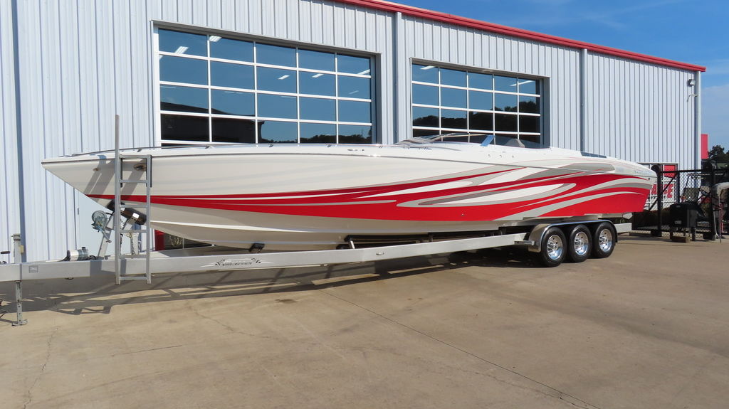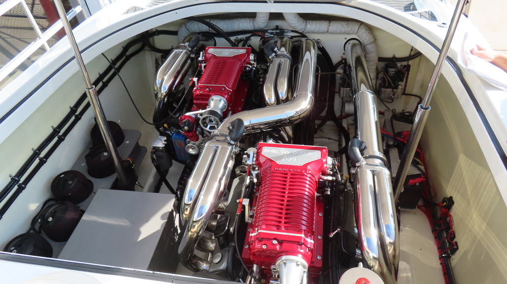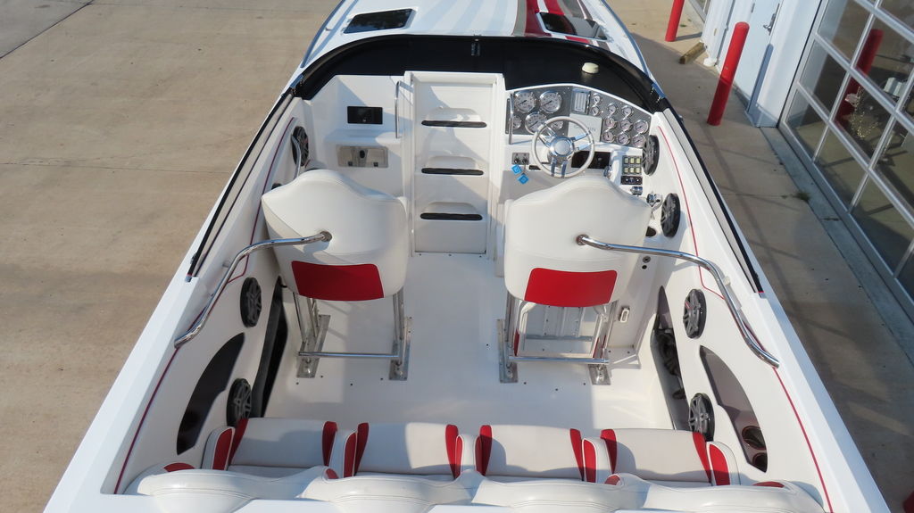 New Velvet Drive transmissions, New Mercury M6 drives, $30k JL Audio sound system with 2 Orion HCCA competition subwoofers, PCI 4 Link Pro intercom system with 6 headsets, 6 mooring fenders with holders, telescoping 3-step swim ladder, powered engine hatch, all new dash, new Livorsi Gauges, New touchscreen Garmin, New bilge pumps, electric bolsters, bimini top, cockpit cover, full cover, drive and trim tab indicators, stainless steel grab handles and hardware, 3 batteries w/ switches, built in battery charger, underwater, cockpit and cabin LED lights, docking lights, sink, daybed, much more!