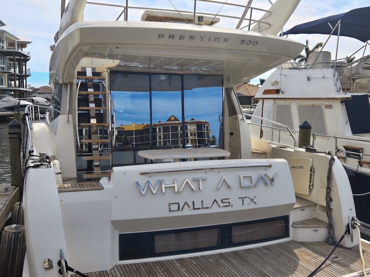 WHAT A DAY is a single-owner uncharted yacht located in Cape Coral, FL, with a transferable, highly sought-after dock slip option.