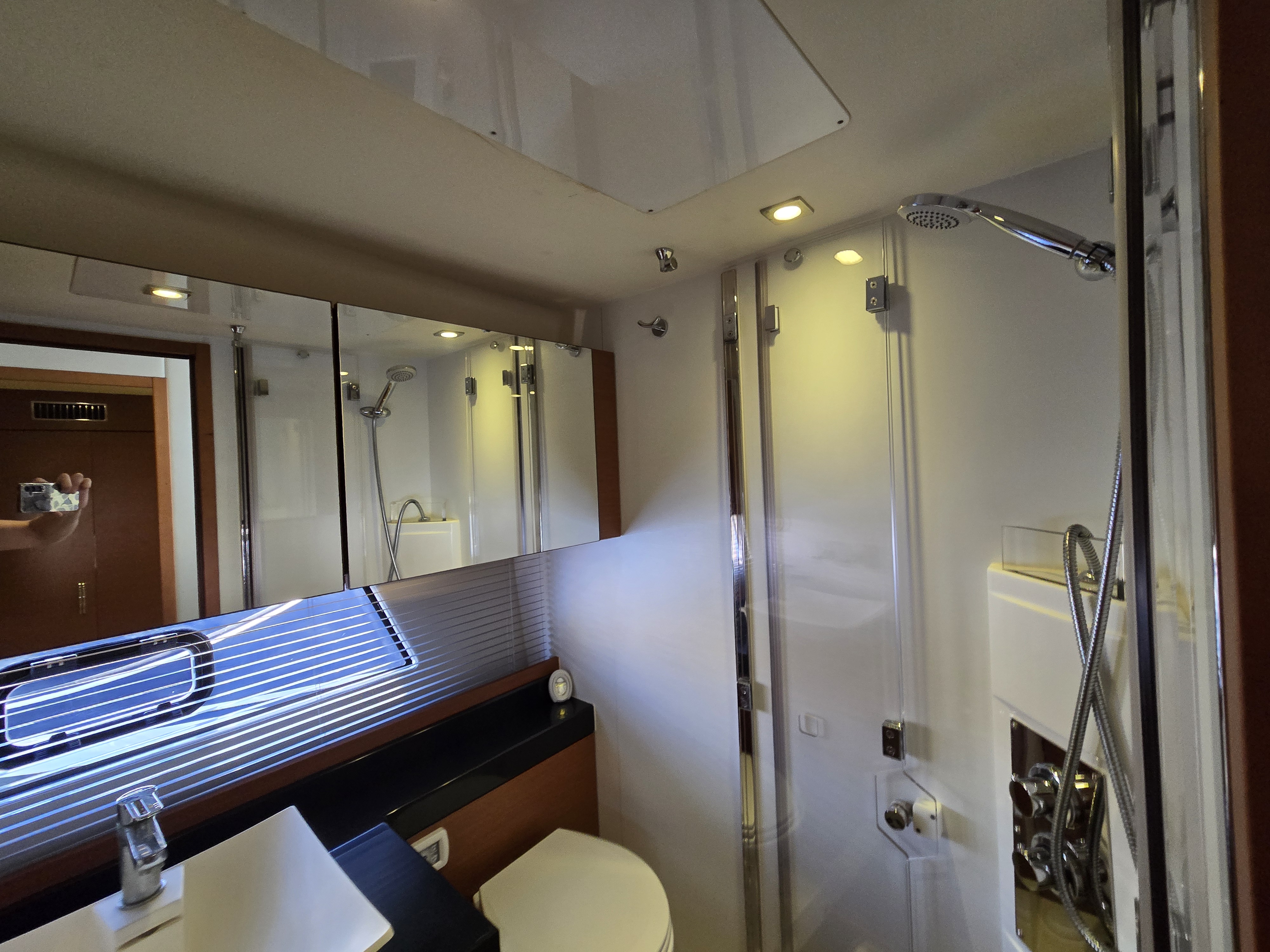 Salt/fresh water washdown, foredeck sunlounge, dockside water, and swim ladder.