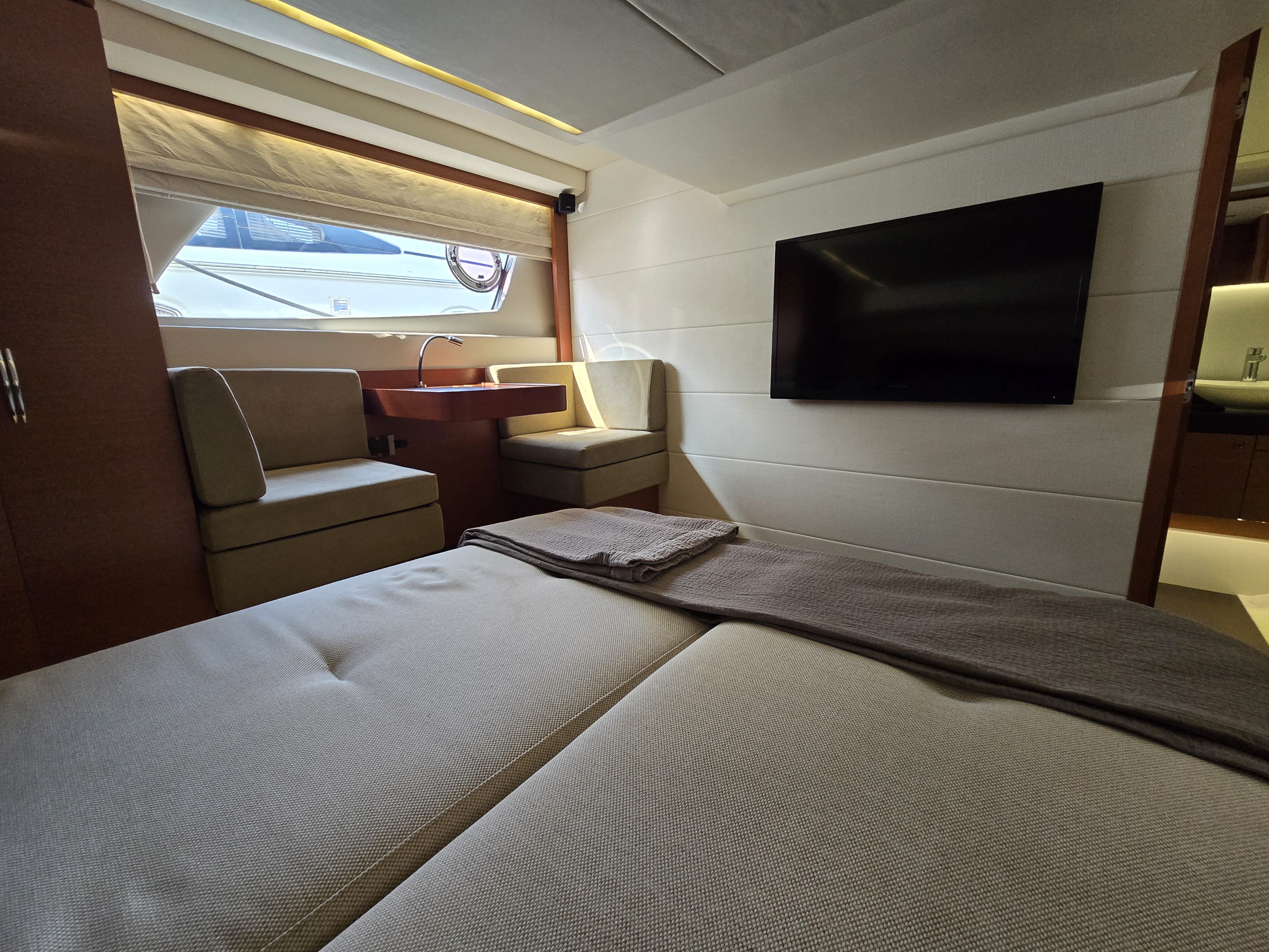 where timeless design meets cutting-edge innovation. Crafted by the renowned French yacht builder Prestige Yachts, the Prestige 500 is more than just a motor yacht—it’s a floating sanctuary of comfort, performance, and elegance. Featuring an award-winning interior and a full-beam private staircase leading down to the primary suite, this yacht offers a unique living experience.