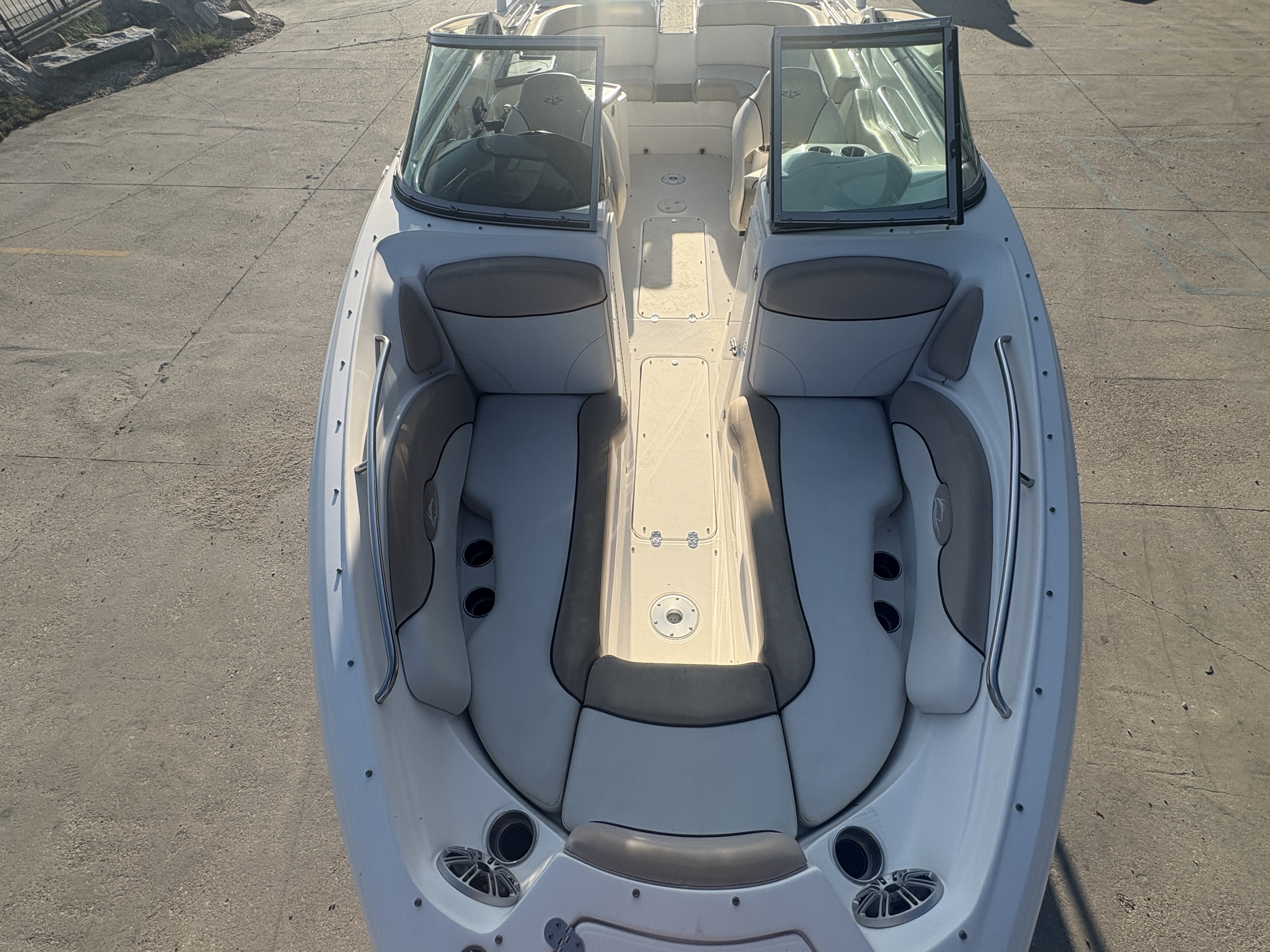 Large 27' class bowrider with deep, comfortable seating