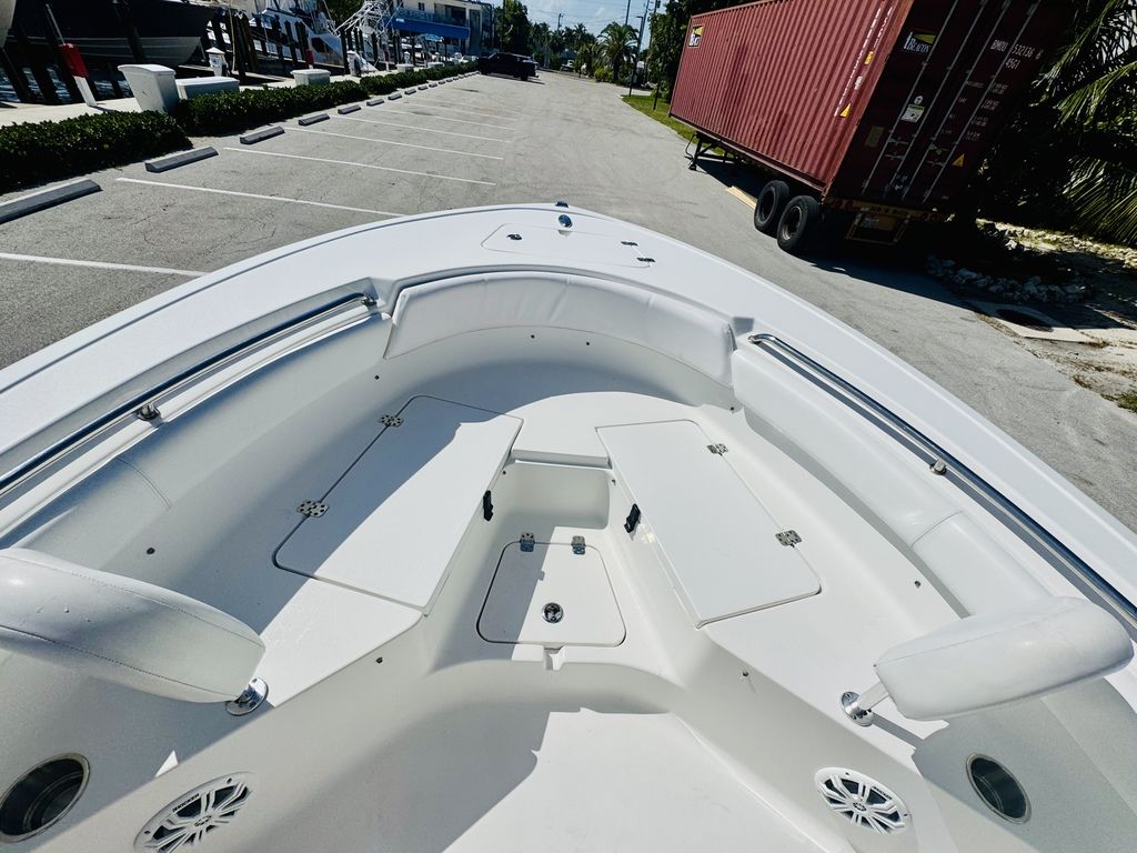 Families will appreciate the wraparound bow seating, rear bench seat with backrest, and swim platform with a stainless steel ladder for easy water access. There’s also a freshwater washdown system and a spacious console compartment that can accommodate a porta-potty, making it perfect for extended days on the water.