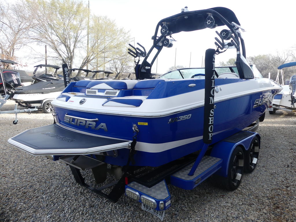This new Supra SA350, SA450 and SA550 combine shocking wakes, precise handling and an awesome interior. It attacks the water with 350-550 horses of Indmar power, depending on your engine choice, pro hull design and precision underwater gear. Snap-out carpet covers a fiberglass floor for a quiet convenient base to a plush interior. The new Barrage Front End projects attitude and protects with interior comfort, while the Battle Prep Transom prepares world-class riders for action. 900 pounds of Liquid Lead ballast, a loaded Roswell Pro Edge Tower and 1,300-pounds of available Flex ballast wake-up dreams of going pro. SA can only mean shock and awe.