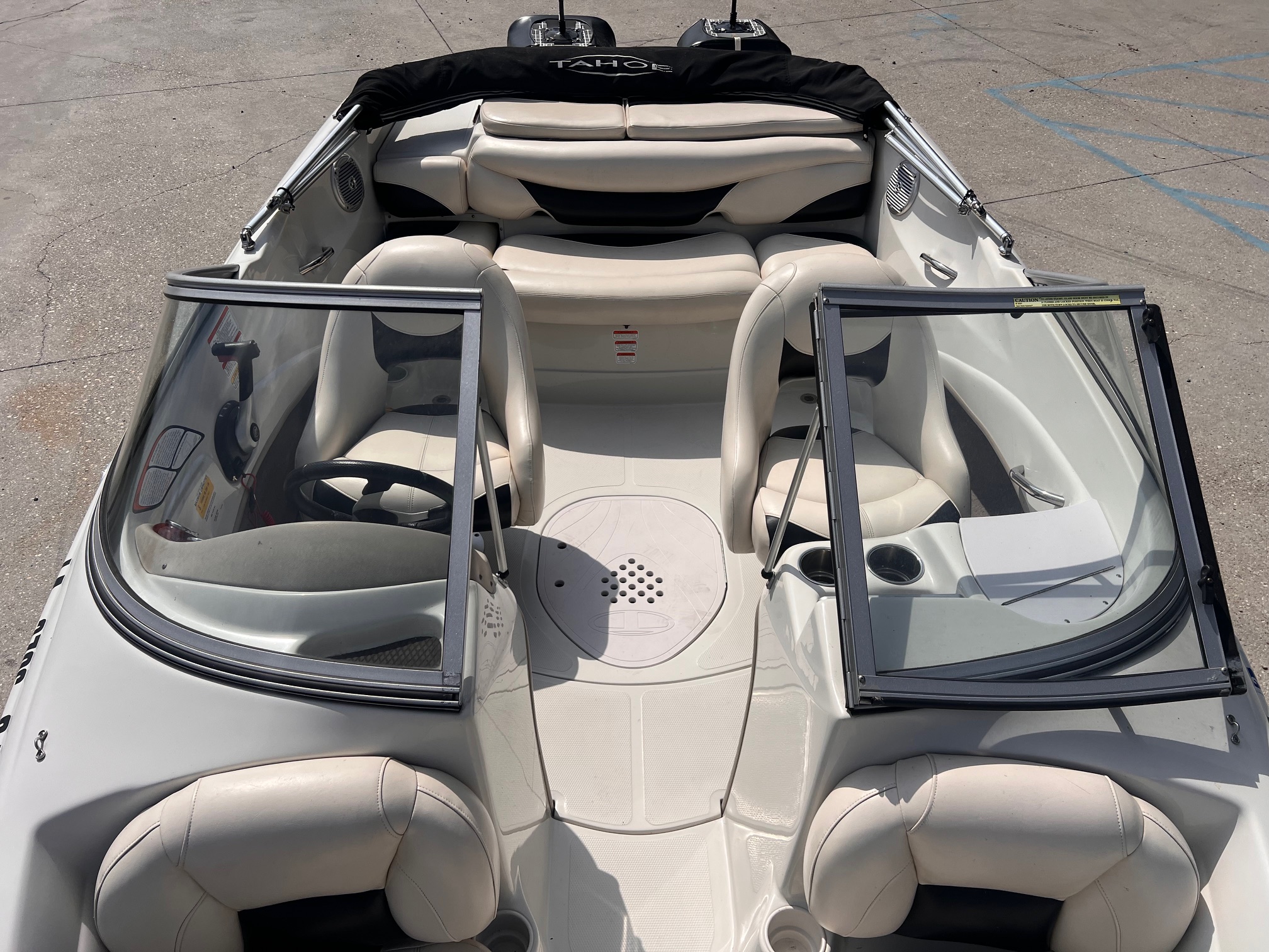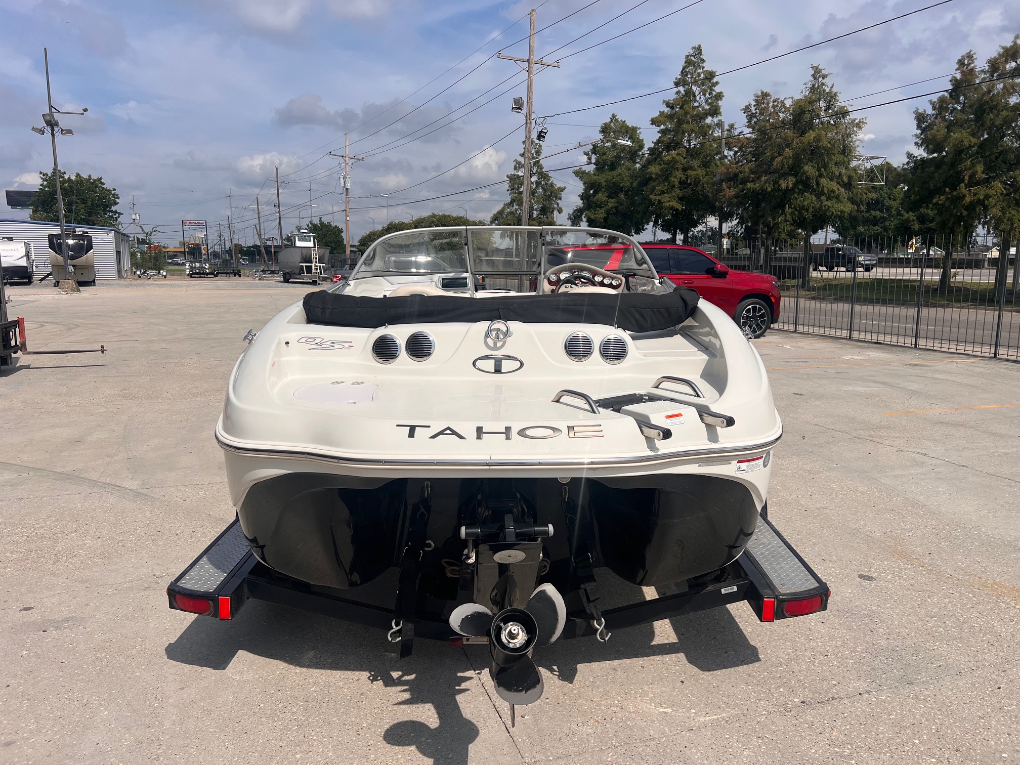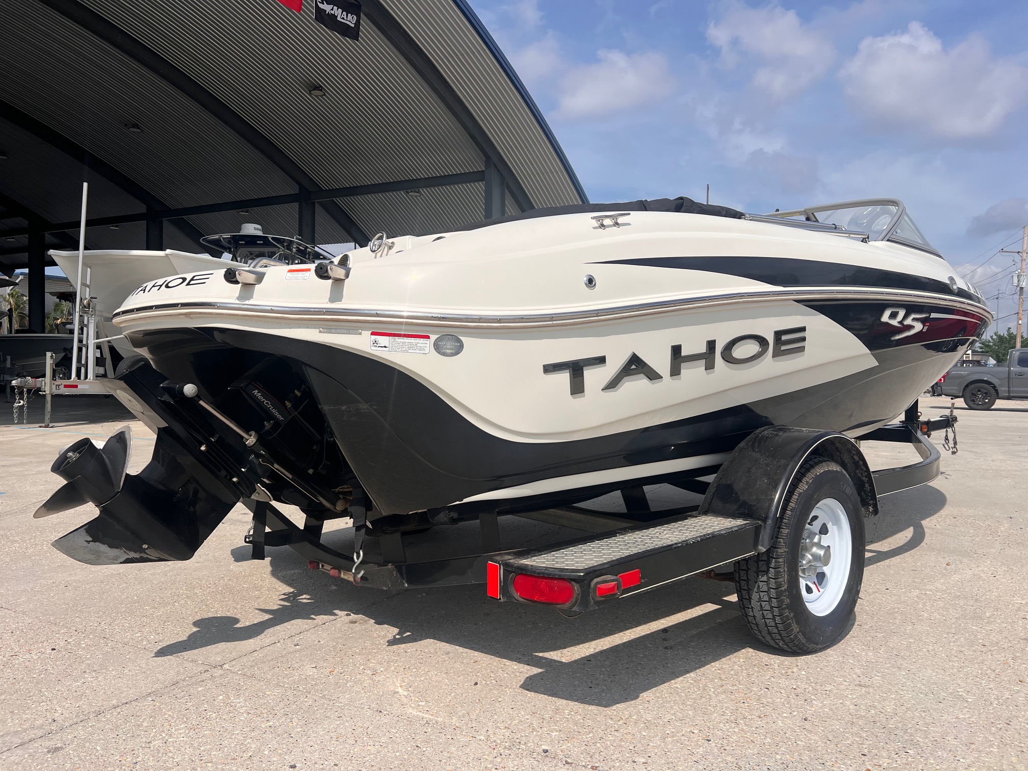 The 2013 Tahoe Q5i is a 19-foot bowrider boat, designed for family fun and watersports. It features a 190 horsepower MerCruiser 4.3L V6 engine with an Alpha One sterndrive. Key features include a spacious cockpit, ample seating, a swim platform, and storage.