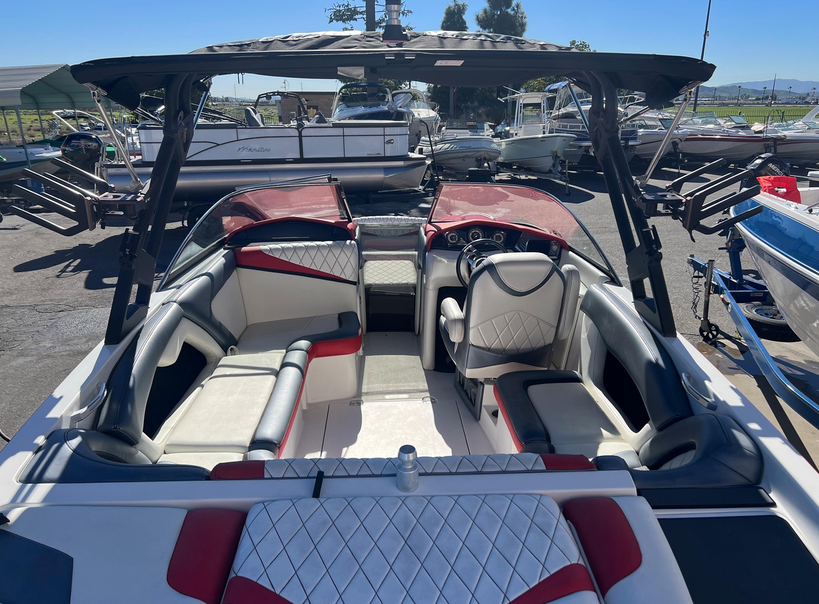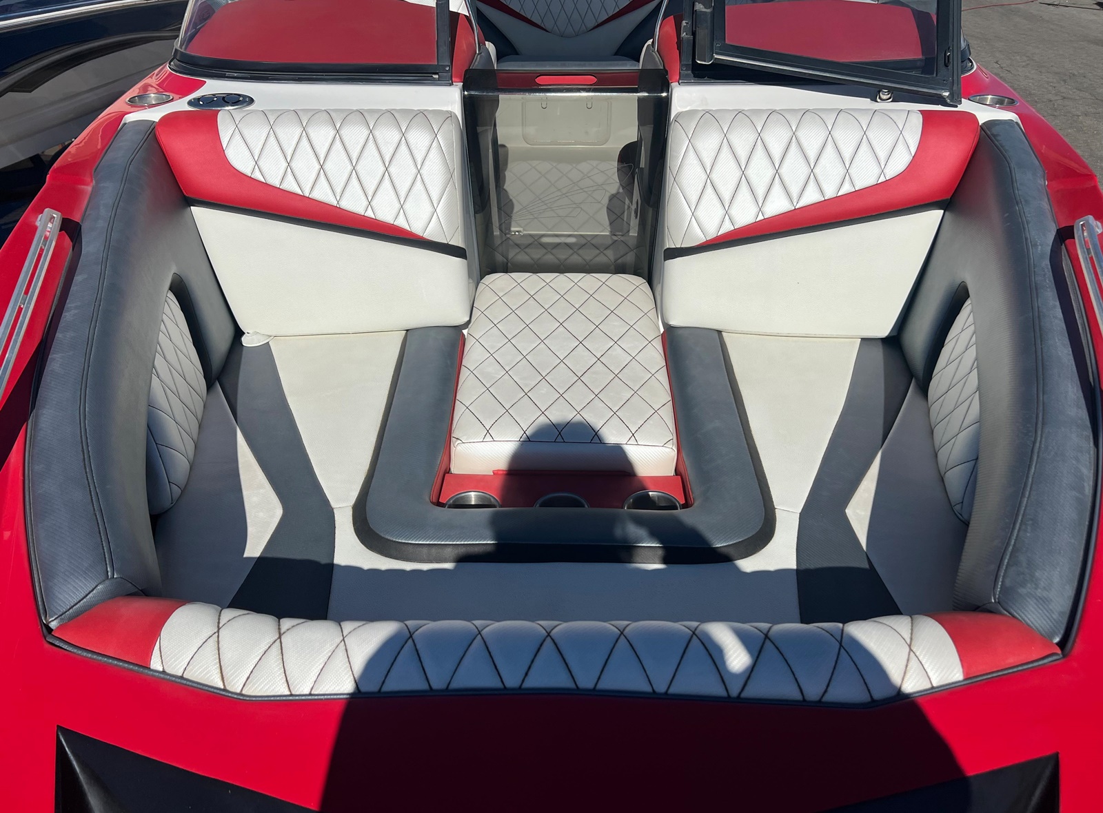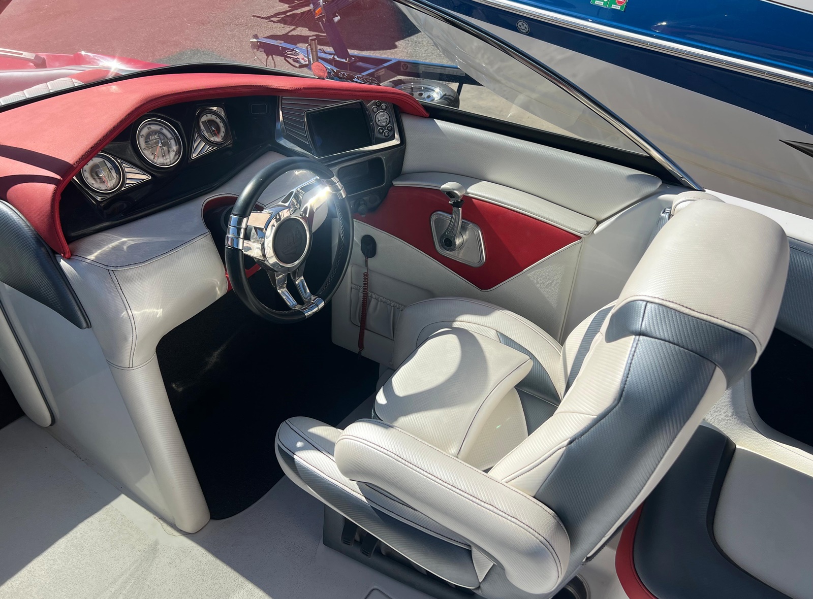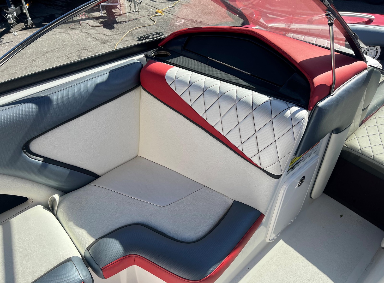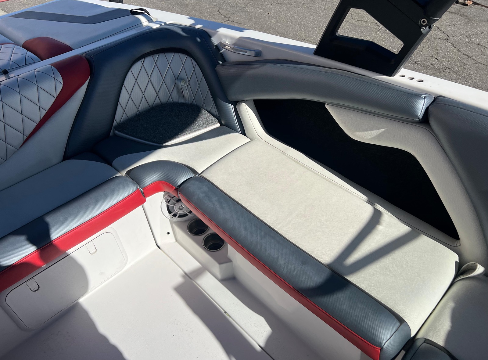 Wake Board Tower With Bimini Top, Stereo, Depth Sounder, Fuel Injection, Docking Lights, Dual Batteries, Cruise Control, Water Ballast System, Drivers Bucket Seat, U Shaped Rear Seating, Tilt Wheel, Open Bow Seating, Bow Filler Cushion, Pop Up Cleats, Motor Box Sun Pad, 12 V Plug and more.