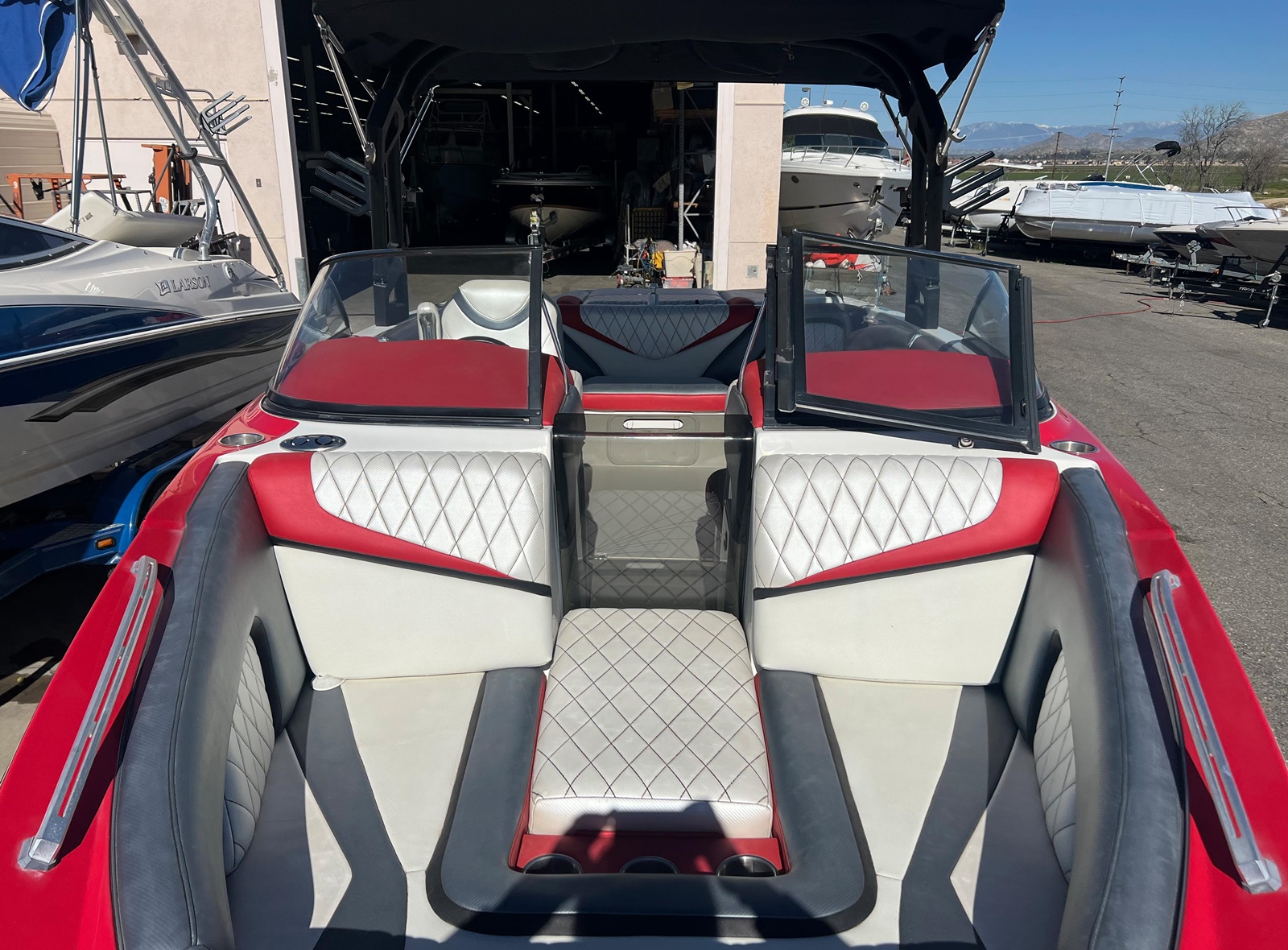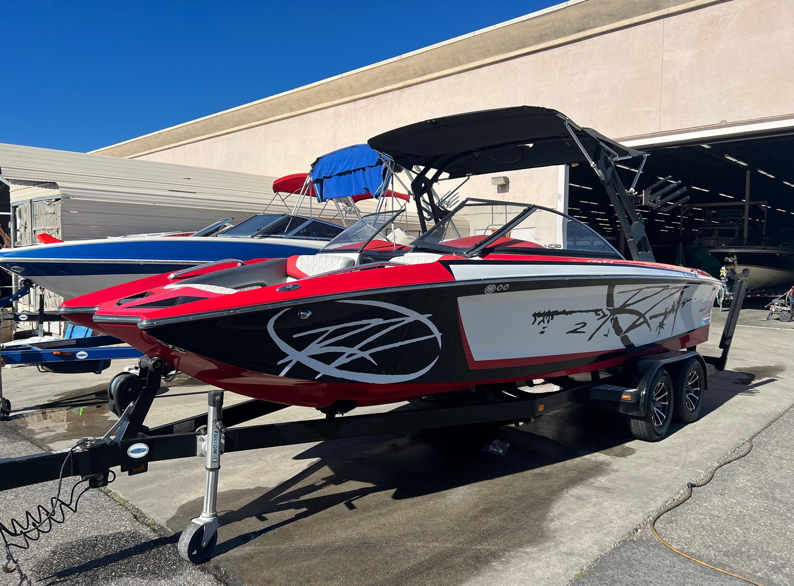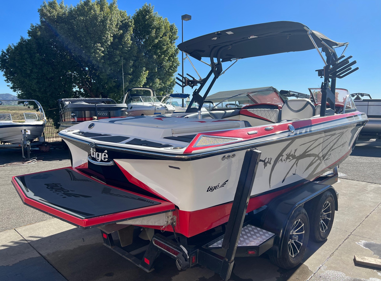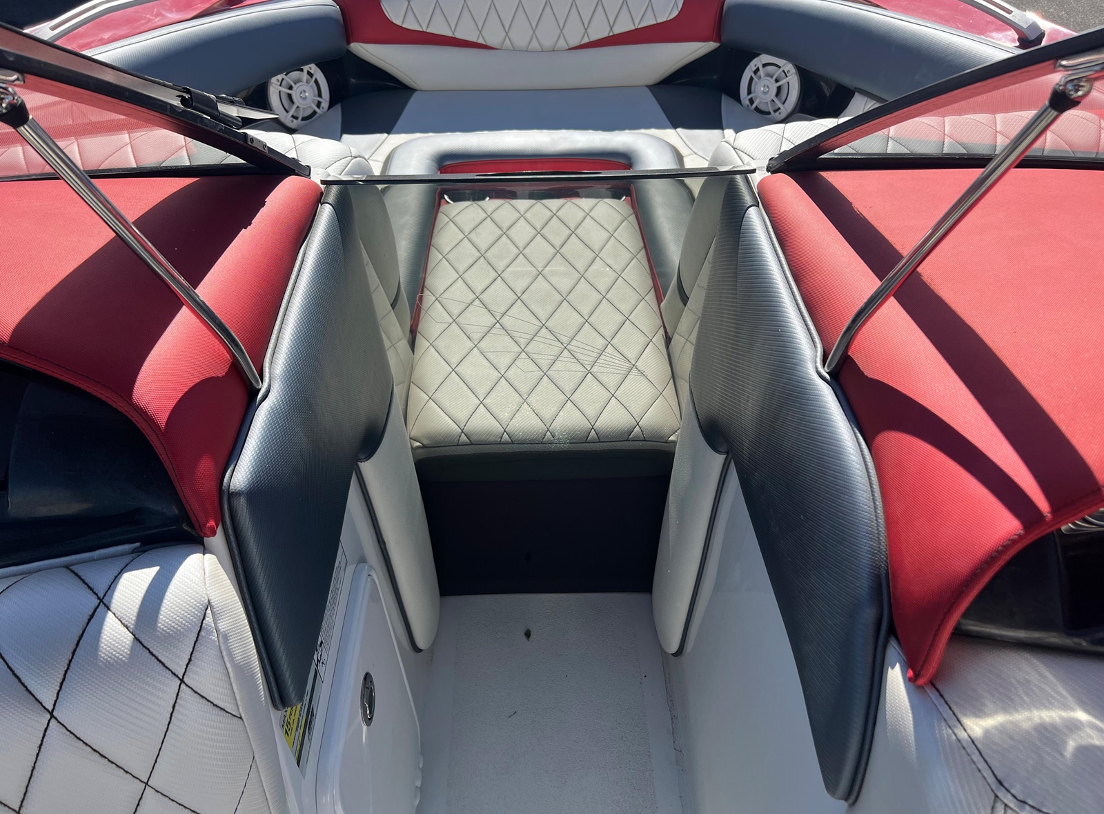 Wake Board Tower With Bimini Top, Stereo, Depth Sounder, Fuel Injection, Docking Lights, Dual Batteries, Cruise Control, Water Ballast System, Drivers Bucket Seat, U Shaped Rear Seating, Tilt Wheel, Open Bow Seating, Bow Filler Cushion, Pop Up Cleats, Motor Box Sun Pad, 12 V Plug and more.