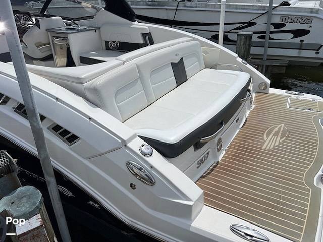 Powered by robust twin Mercruisers, this boat delivers exhilarating speed and precise handling that can tackle rough waters with ease. Whether you're cruising at full throttle or meandering through calm waters, the 307 SSX offers a smooth and stable ride.