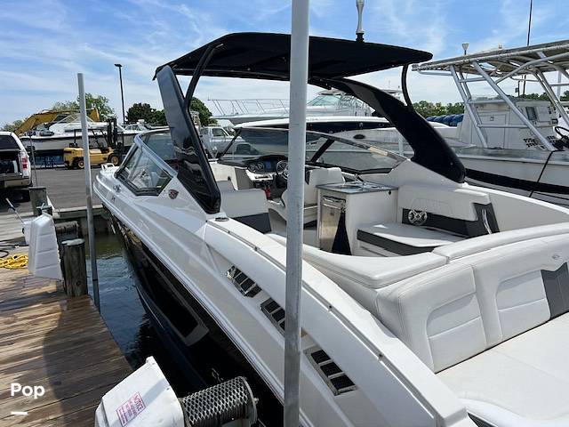 This model comes equipped with a sound system, an enclosed head for added convenience, and a wet bar to keep your guests entertained and refreshed. The integrated swim platform with a ladder makes water access effortless, perfect for swimming and water sports.