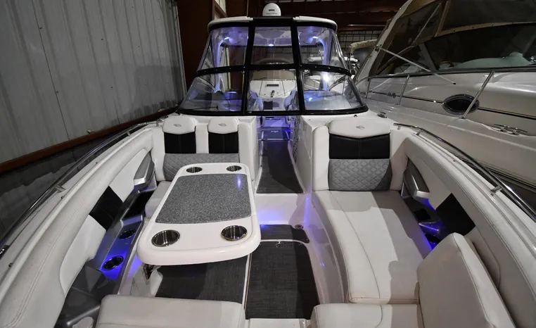 Broker Notes: Inside heated winter stored. Underwater lighting, striking black hull-sides, hardtop. Canvas Package - Canvas-Enclosure, Professionally serviced by current owner (2nd owner) of 4-years .. Highly recommended by listing agent!