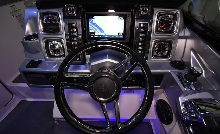 Freshwater since new this vessel features Twin MerCruiser 350-Mag 300-hp Gas Engine's (Note DTS w/Joy-Stick Piloting) with Bravo III Sterndrives and only 400 original hours. Notable features include but are not limited to the following: Air-Conditioning & Heat (1-Unit), Head (Vacuflush) w/Vanity/Sink, Windlass Anchor w/Polished Stainless-Steel Anchor / Forward Pedal-Controls, Westerbeke 5kw Generator, Garmin GPSMAP 942XS (Color / TouchScreen) GPS/Chartplotter, Fusion Apollo Premium Sound System w/Bluetooth (w/AMP / Subwoofer), Cockpit Wet Bar w/Sink/Beverage-Refrigerator, Cockpit Television, and MUCH more!