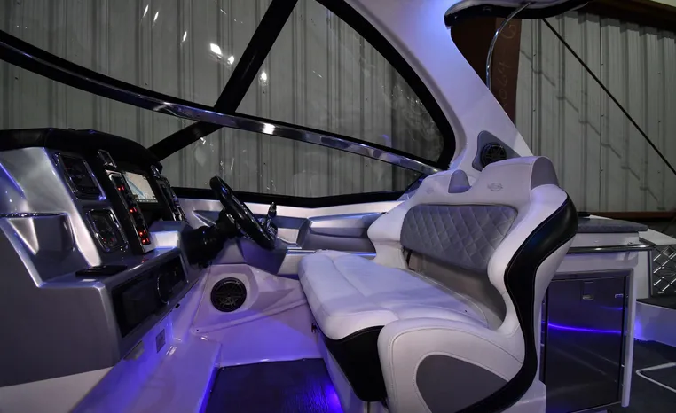 Freshwater since new this vessel features Twin MerCruiser 350-Mag 300-hp Gas Engine's (Note DTS w/Joy-Stick Piloting) with Bravo III Sterndrives and only 400 original hours. Notable features include but are not limited to the following: Air-Conditioning & Heat (1-Unit), Head (Vacuflush) w/Vanity/Sink, Windlass Anchor w/Polished Stainless-Steel Anchor / Forward Pedal-Controls, Westerbeke 5kw Generator, Garmin GPSMAP 942XS (Color / TouchScreen) GPS/Chartplotter, Fusion Apollo Premium Sound System w/Bluetooth (w/AMP / Subwoofer), Cockpit Wet Bar w/Sink/Beverage-Refrigerator, Cockpit Television, and MUCH more!