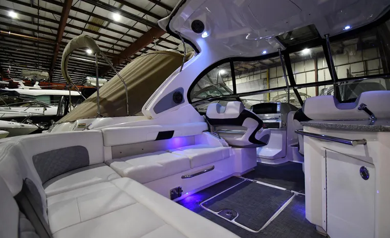 Freshwater since new this vessel features Twin MerCruiser 350-Mag 300-hp Gas Engine's (Note DTS w/Joy-Stick Piloting) with Bravo III Sterndrives and only 400 original hours. Notable features include but are not limited to the following: Air-Conditioning & Heat (1-Unit), Head (Vacuflush) w/Vanity/Sink, Windlass Anchor w/Polished Stainless-Steel Anchor / Forward Pedal-Controls, Westerbeke 5kw Generator, Garmin GPSMAP 942XS (Color / TouchScreen) GPS/Chartplotter, Fusion Apollo Premium Sound System w/Bluetooth (w/AMP / Subwoofer), Cockpit Wet Bar w/Sink/Beverage-Refrigerator, Cockpit Television, and MUCH more!