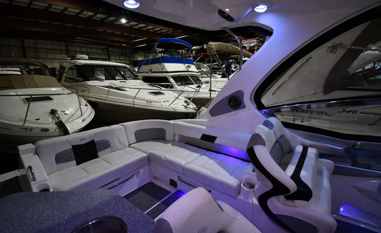 Freshwater since new this vessel features Twin MerCruiser 350-Mag 300-hp Gas Engine's (Note DTS w/Joy-Stick Piloting) with Bravo III Sterndrives and only 400 original hours. Notable features include but are not limited to the following: Air-Conditioning & Heat (1-Unit), Head (Vacuflush) w/Vanity/Sink, Windlass Anchor w/Polished Stainless-Steel Anchor / Forward Pedal-Controls, Westerbeke 5kw Generator, Garmin GPSMAP 942XS (Color / TouchScreen) GPS/Chartplotter, Fusion Apollo Premium Sound System w/Bluetooth (w/AMP / Subwoofer), Cockpit Wet Bar w/Sink/Beverage-Refrigerator, Cockpit Television, and MUCH more!