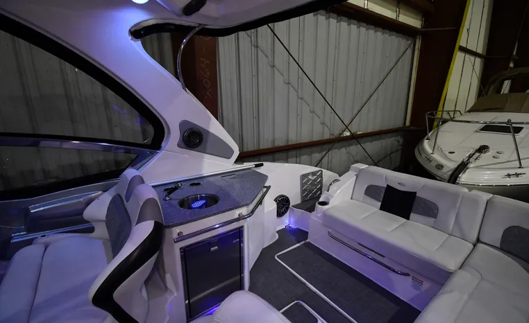 Freshwater since new this vessel features Twin MerCruiser 350-Mag 300-hp Gas Engine's (Note DTS w/Joy-Stick Piloting) with Bravo III Sterndrives and only 400 original hours. Notable features include but are not limited to the following: Air-Conditioning & Heat (1-Unit), Head (Vacuflush) w/Vanity/Sink, Windlass Anchor w/Polished Stainless-Steel Anchor / Forward Pedal-Controls, Westerbeke 5kw Generator, Garmin GPSMAP 942XS (Color / TouchScreen) GPS/Chartplotter, Fusion Apollo Premium Sound System w/Bluetooth (w/AMP / Subwoofer), Cockpit Wet Bar w/Sink/Beverage-Refrigerator, Cockpit Television, and MUCH more!