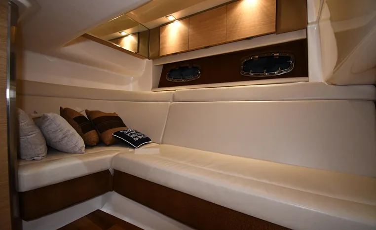 Freshwater since new this vessel features Twin MerCruiser 350-Mag 300-hp Gas Engine's (Note DTS w/Joy-Stick Piloting) with Bravo III Sterndrives and only 400 original hours. Notable features include but are not limited to the following: Air-Conditioning & Heat (1-Unit), Head (Vacuflush) w/Vanity/Sink, Windlass Anchor w/Polished Stainless-Steel Anchor / Forward Pedal-Controls, Westerbeke 5kw Generator, Garmin GPSMAP 942XS (Color / TouchScreen) GPS/Chartplotter, Fusion Apollo Premium Sound System w/Bluetooth (w/AMP / Subwoofer), Cockpit Wet Bar w/Sink/Beverage-Refrigerator, Cockpit Television, and MUCH more!