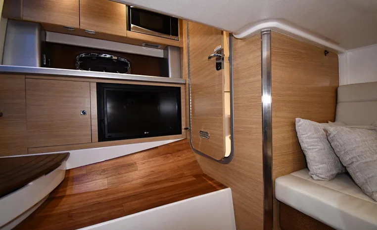 Freshwater since new this vessel features Twin MerCruiser 350-Mag 300-hp Gas Engine's (Note DTS w/Joy-Stick Piloting) with Bravo III Sterndrives and only 400 original hours. Notable features include but are not limited to the following: Air-Conditioning & Heat (1-Unit), Head (Vacuflush) w/Vanity/Sink, Windlass Anchor w/Polished Stainless-Steel Anchor / Forward Pedal-Controls, Westerbeke 5kw Generator, Garmin GPSMAP 942XS (Color / TouchScreen) GPS/Chartplotter, Fusion Apollo Premium Sound System w/Bluetooth (w/AMP / Subwoofer), Cockpit Wet Bar w/Sink/Beverage-Refrigerator, Cockpit Television, and MUCH more!