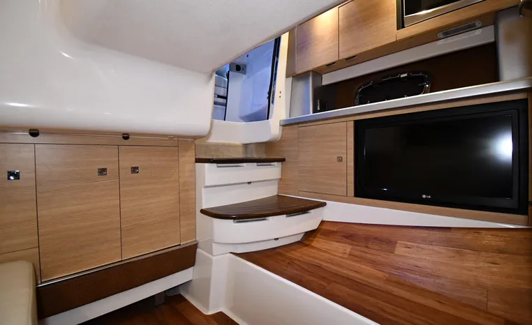 Freshwater since new this vessel features Twin MerCruiser 350-Mag 300-hp Gas Engine's (Note DTS w/Joy-Stick Piloting) with Bravo III Sterndrives and only 400 original hours. Notable features include but are not limited to the following: Air-Conditioning & Heat (1-Unit), Head (Vacuflush) w/Vanity/Sink, Windlass Anchor w/Polished Stainless-Steel Anchor / Forward Pedal-Controls, Westerbeke 5kw Generator, Garmin GPSMAP 942XS (Color / TouchScreen) GPS/Chartplotter, Fusion Apollo Premium Sound System w/Bluetooth (w/AMP / Subwoofer), Cockpit Wet Bar w/Sink/Beverage-Refrigerator, Cockpit Television, and MUCH more!