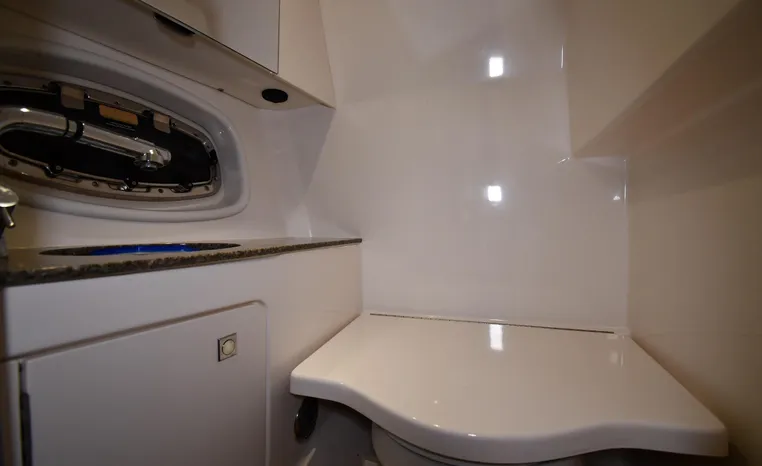 Freshwater since new this vessel features Twin MerCruiser 350-Mag 300-hp Gas Engine's (Note DTS w/Joy-Stick Piloting) with Bravo III Sterndrives and only 400 original hours. Notable features include but are not limited to the following: Air-Conditioning & Heat (1-Unit), Head (Vacuflush) w/Vanity/Sink, Windlass Anchor w/Polished Stainless-Steel Anchor / Forward Pedal-Controls, Westerbeke 5kw Generator, Garmin GPSMAP 942XS (Color / TouchScreen) GPS/Chartplotter, Fusion Apollo Premium Sound System w/Bluetooth (w/AMP / Subwoofer), Cockpit Wet Bar w/Sink/Beverage-Refrigerator, Cockpit Television, and MUCH more!
