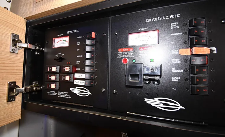 Freshwater since new this vessel features Twin MerCruiser 350-Mag 300-hp Gas Engine's (Note DTS w/Joy-Stick Piloting) with Bravo III Sterndrives and only 400 original hours. Notable features include but are not limited to the following: Air-Conditioning & Heat (1-Unit), Head (Vacuflush) w/Vanity/Sink, Windlass Anchor w/Polished Stainless-Steel Anchor / Forward Pedal-Controls, Westerbeke 5kw Generator, Garmin GPSMAP 942XS (Color / TouchScreen) GPS/Chartplotter, Fusion Apollo Premium Sound System w/Bluetooth (w/AMP / Subwoofer), Cockpit Wet Bar w/Sink/Beverage-Refrigerator, Cockpit Television, and MUCH more!